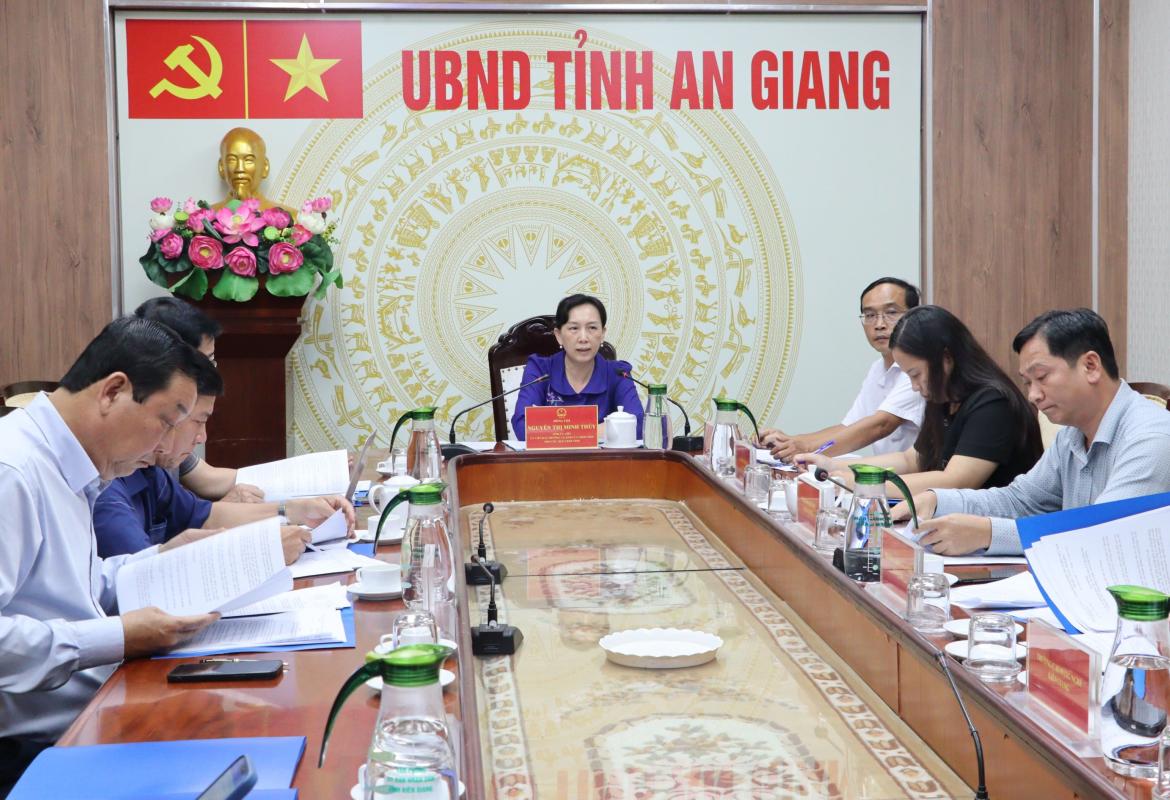 (AG Provincial E-Portal) - On October 28, Vice Chairwoman of the Provincial People’s Committee Nguyen Thi Minh Thuy—Head of the Subcommittee on Training and Upskilling Human Resources—chaired a meeting of the Subcommittee on Training and Upskilling Human Resources under the Provincial Steering Committee for preparing and organizing the conferences and activities of APEC Year 2027, in the Phu Quoc special zone, An Giang Province.