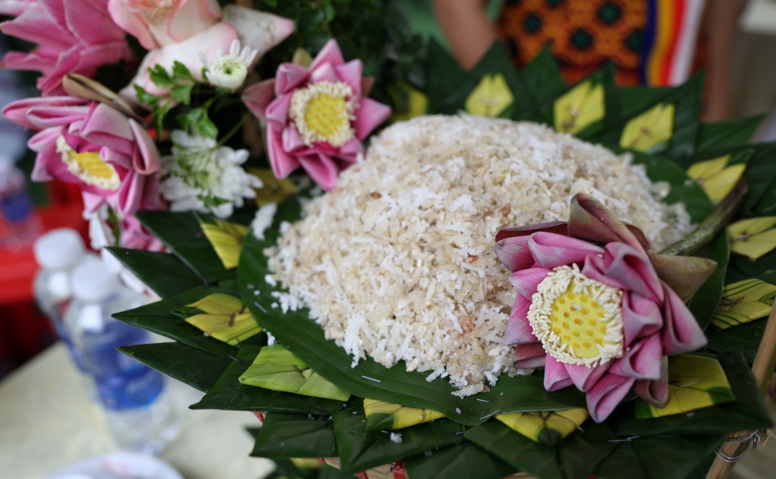 The full moon of the tenth lunar month every year is the time when the Khmer people begin harvesting rice. With faith, sincerity, and gratitude to the Moon deity and the gods who govern heaven and earth for blessing abundant harvests, favorable weather, and praying for health, prosperity, and peace for every household, the Khmer people entrust this belief into the first grains of sticky rice of the season.