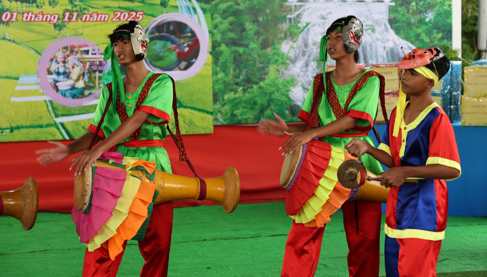 Flattened rice pounding is one of the intangible cultural heritages of the Southern Khmer people. In O Lam Commune, there are also the Dike stage performance art, Chhay-dam drum performance, five-tone music, and the cow racing festival, all recognized as national intangible cultural heritage.