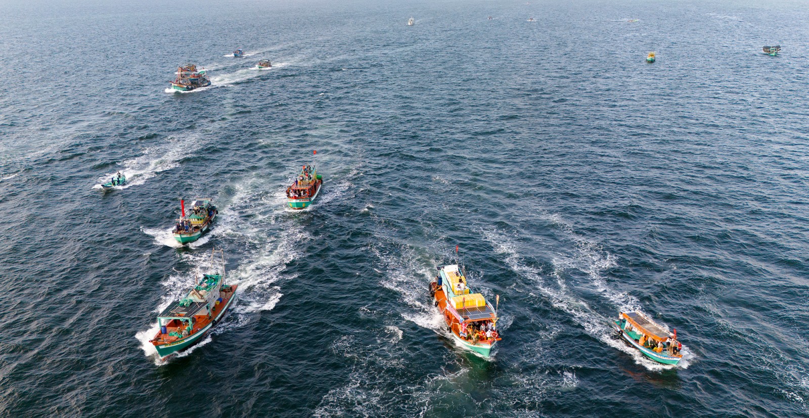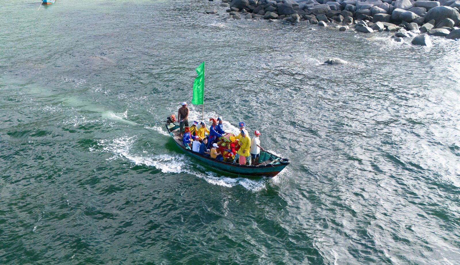 At Nghinh Ong wharf, the God's palanquin will be invited onto the Nghinh boat, leading a large group of fishermen's boats. Arriving at the Nghinh Than point offshore, the celebrant will offer offerings and read traditional prayers for peace. The ritual of releasing flowers and offerings into the sea is meant to pray for peace and a bountiful harvest. Dozens of fishing boats and ships of Lai Son fishermen and the surrounding area join the Nghinh Ong procession.