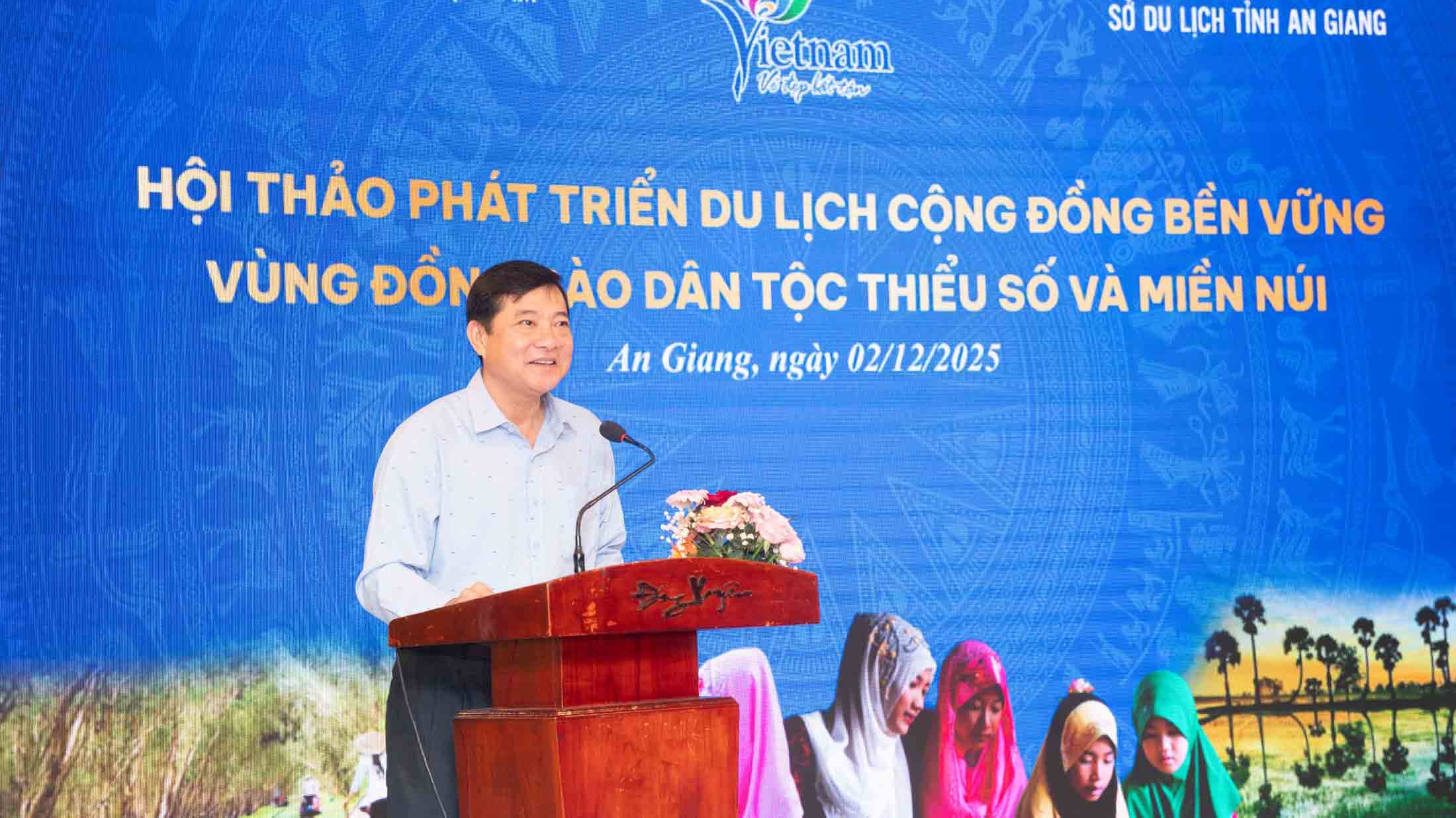 (AG Provincial E-Portal) - On the morning of December 02, the Vietnam National Administration of Tourism coordinated with An Giang Department of Tourism to organize a workshop on "Developing sustainable community tourism in ethnic minority and mountainous areas", with the participation of more than 100 delegates representing tourism businesses and ethnic minorities in the province.