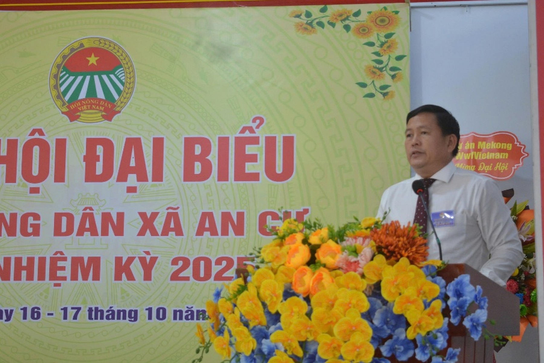(Cổng TTĐT tỉnh AG)- Trong hai ngày 16 và 17/10, Hội Nông dân xã An Cư tổ chức Đại hội đại biểu lần thứ I, nhiệm kỳ 2025 – 2030. Phó Chủ tịch UBMTTQ Việt Nam tỉnh An Giang, Chủ tịch Hội Nông dân tỉnh Nguyễn Văn Cọp đến dự và chỉ đạo đại hội. Đại hội có sự tham dự của lãnh đạo Đảng, chính quyền, UBMTTQVN xã và 80 đại biểu đại diện trên 1.970 hội viên.