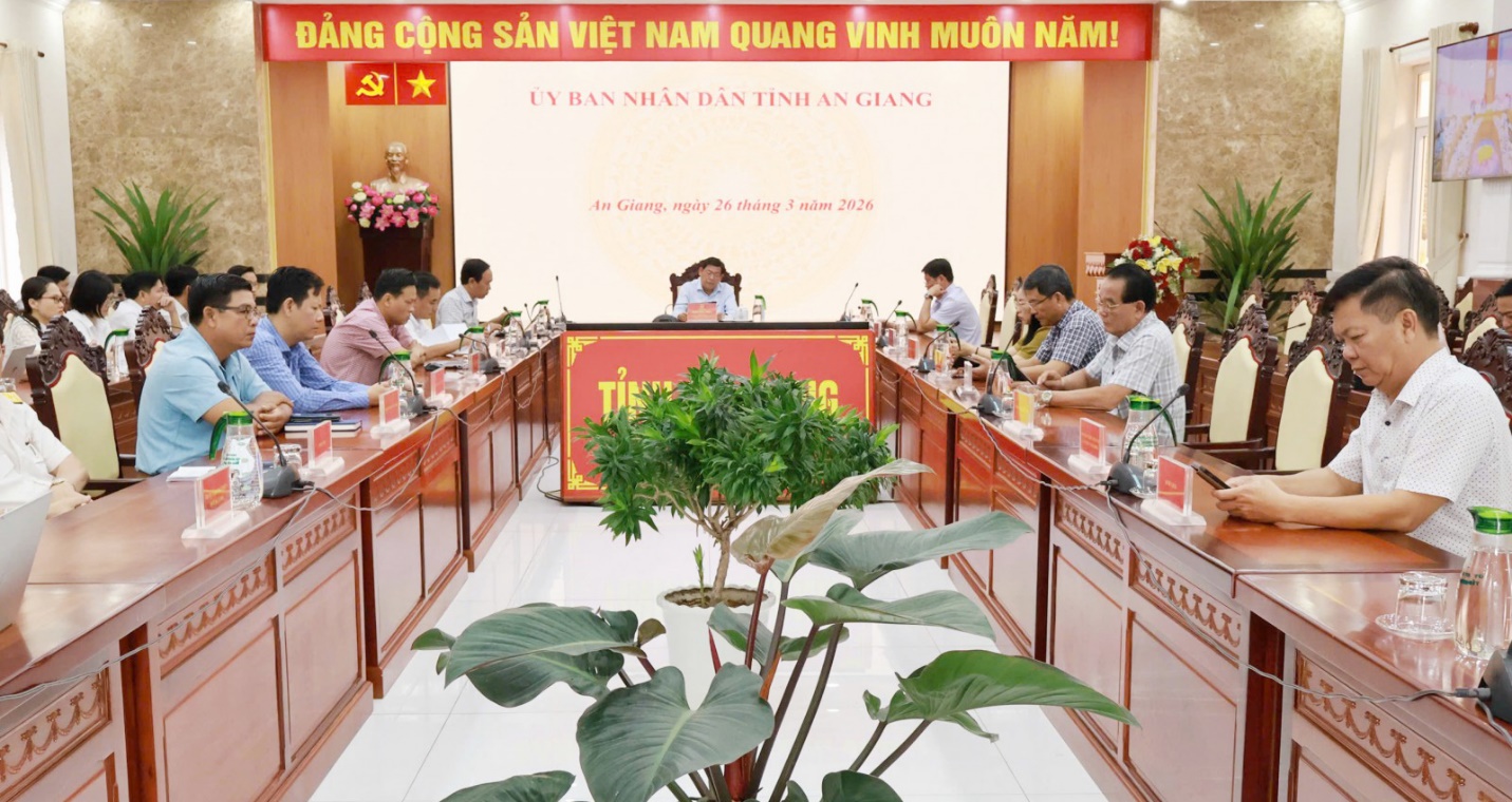 (Cổng TTĐT tỉnh AG)- Sáng 26/3, UBND tỉnh An Giang phối hợp Cục Quản lý đất đai, Bộ Nông nghiệp và Môi trường tổ chức Hội nghị tập huấn Nghị quyết số 254/2025/QH15 của Quốc hội và Nghị định số 49/2026/NĐ-CP của Chính phủ quy định chi tiết và hướng dẫn một số điều của Nghị quyết số 254/2025/QH15 của Quốc hội quy định một số cơ chế, chính sách tháo gỡ khó khăn, vướng mắc trong tổ chức thi hành Luật Đất đai.
