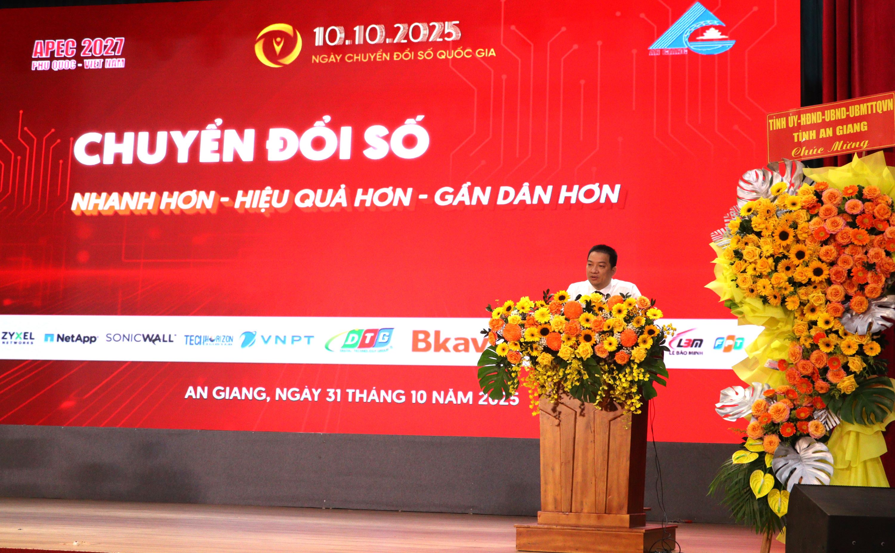 Phát biểu tại hội thảo, Phó Chủ tịch Thường trực UBND tỉnh An Giang Nguyễn Thanh Phong nhấn mạnh hội thảo không chỉ là diễn đàn trao đổi, chia sẻ kinh nghiệm, mà còn là không gian kết nối giữa Chính quyền – Doanh nghiệp – Chuyên gia – Người dân, nhằm lan tỏa tinh thần chuyển đổi số trong mọi mặt đời sống, góp phần thực hiện thắng lợi Chương trình chuyển đổi số tỉnh An Giang giai đoạn 2021–2025, định hướng đến năm 2030.