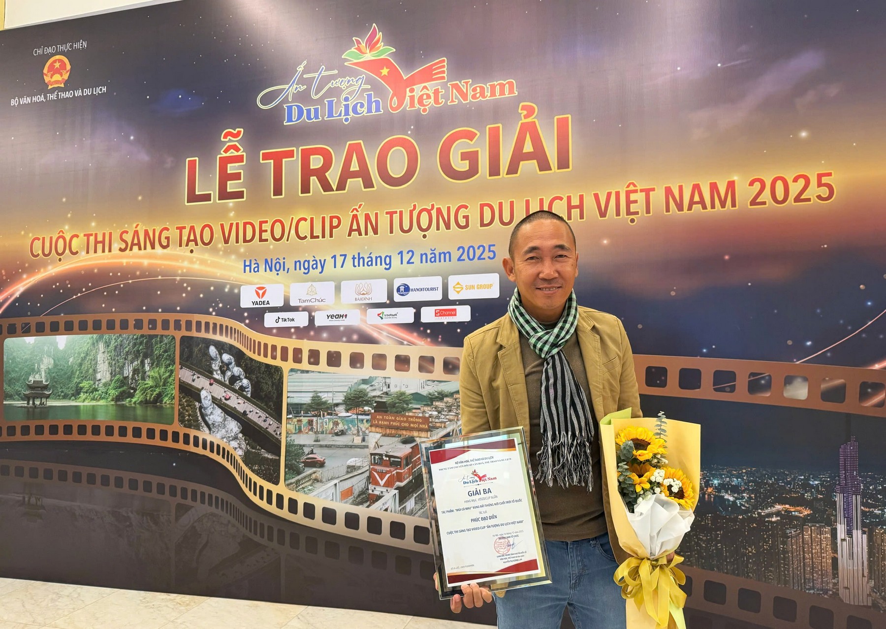 (Cổng TTĐT tỉnh AG)- Tối 17/12, tại Nhà hát Âu Cơ (Hà Nội), Lễ Tổng kết và trao giải Cuộc thi sáng tạo video clip “Ấn tượng Du lịch Việt Nam” năm 2025 được tổ chức. Cuộc thi do Trung tâm Chuyển đổi số Văn hóa, Thể thao và Du lịch (Bộ Văn hóa, Thể thao và Du lịch) phối hợp với các đơn vị liên quan tổ chức.