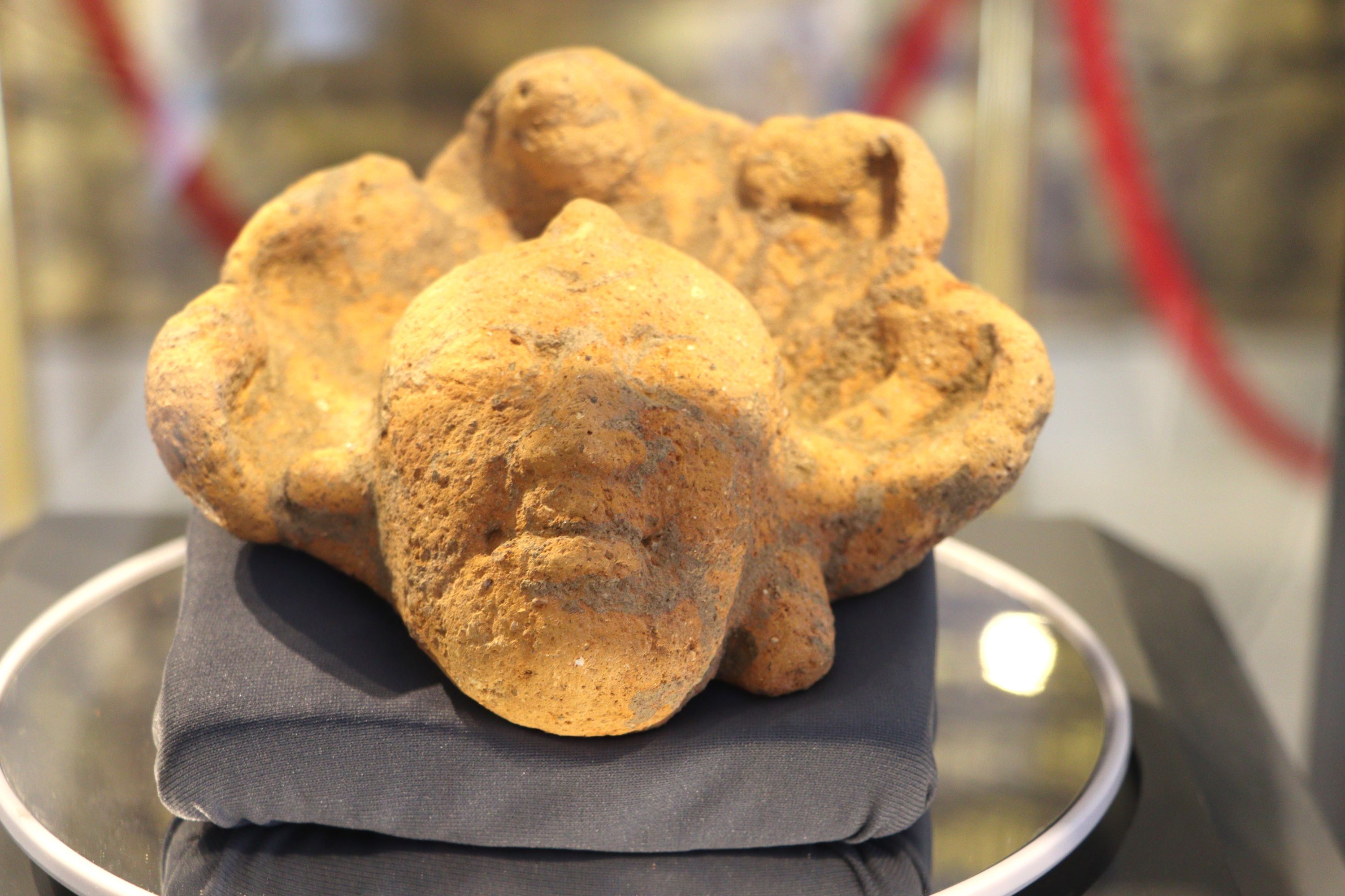 Đầu tượng Phật Linh Sơn Bắc - Hiện vật bằng đất nung, thể hiện hình Đức Phật được che chở bởi vòm rắn Naga 5 đầu – mô típ phổ biến trong mỹ thuật Phật giáo ảnh hưởng Ấn Độ. Tượng được phát hiện tại di tích Linh Sơn Bắc trong tầng văn hóa chứa nhiều di vật gốm, ngói, đèn dầu, văn bia… có niên đại từ thế kỷ I–II đến IX–XII. Đây là minh chứng quan trọng cho sự phát triển tôn giáo – tín ngưỡng của cư dân Óc Eo.