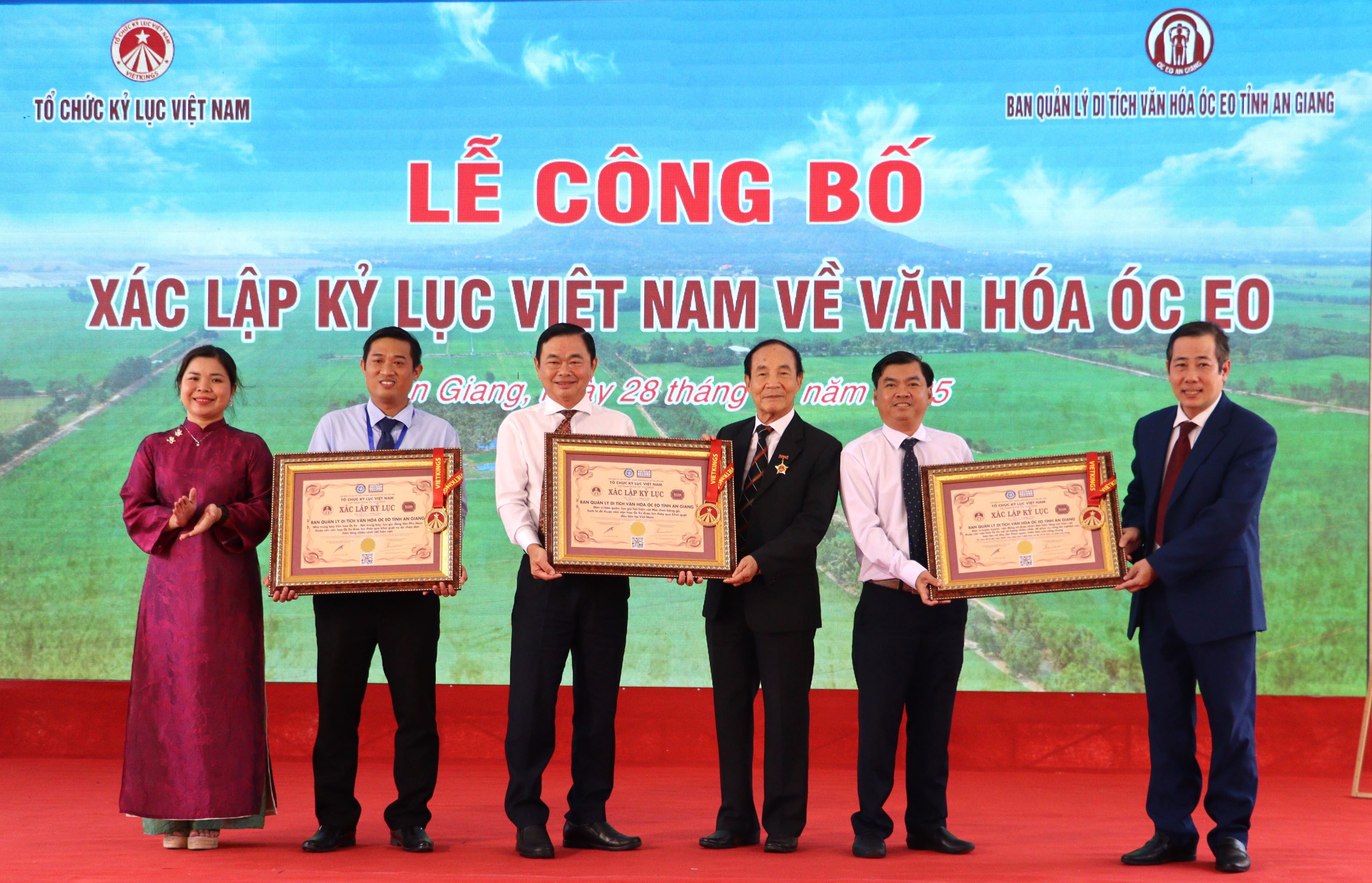 Theo Quyết định số 3306/KLVN/2025, Trung tâm Kỷ lục Việt Nam xác lập 3 kỷ lục dành cho Ban Quản lý Di tích Văn hóa Óc Eo, gồm: