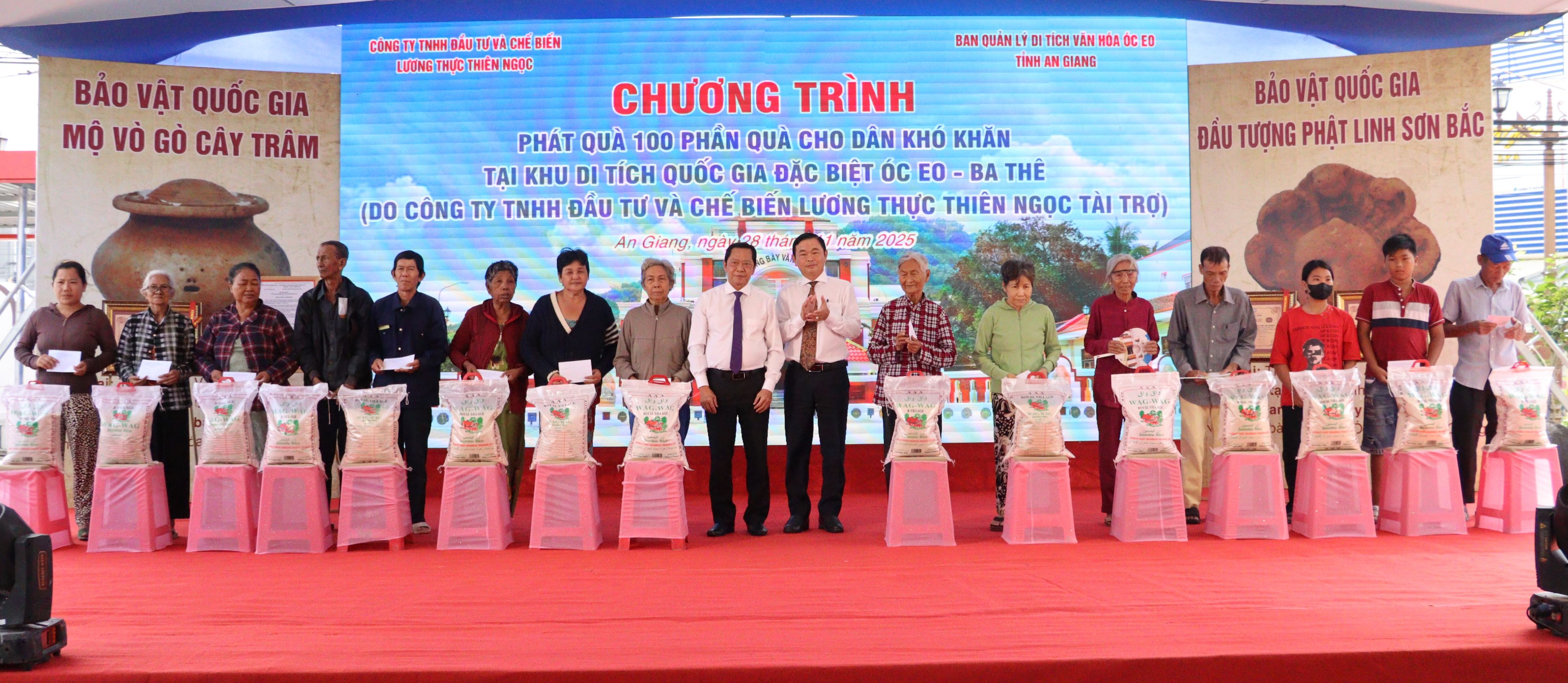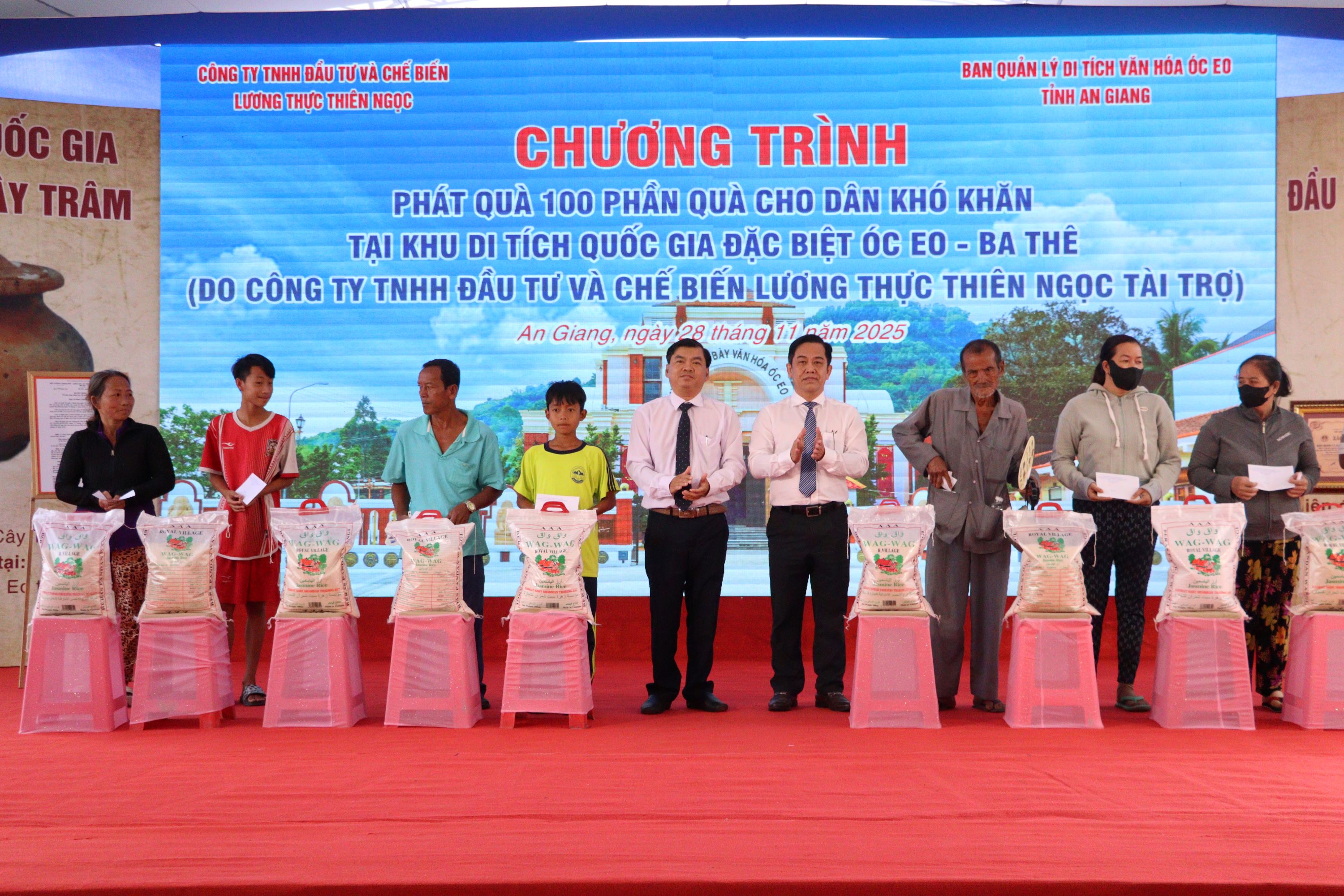 Dịp này, ban tổ chức trao 100 phần quà cho người dân có hoàn cảnh khó khăn tại xã Óc Eo./.