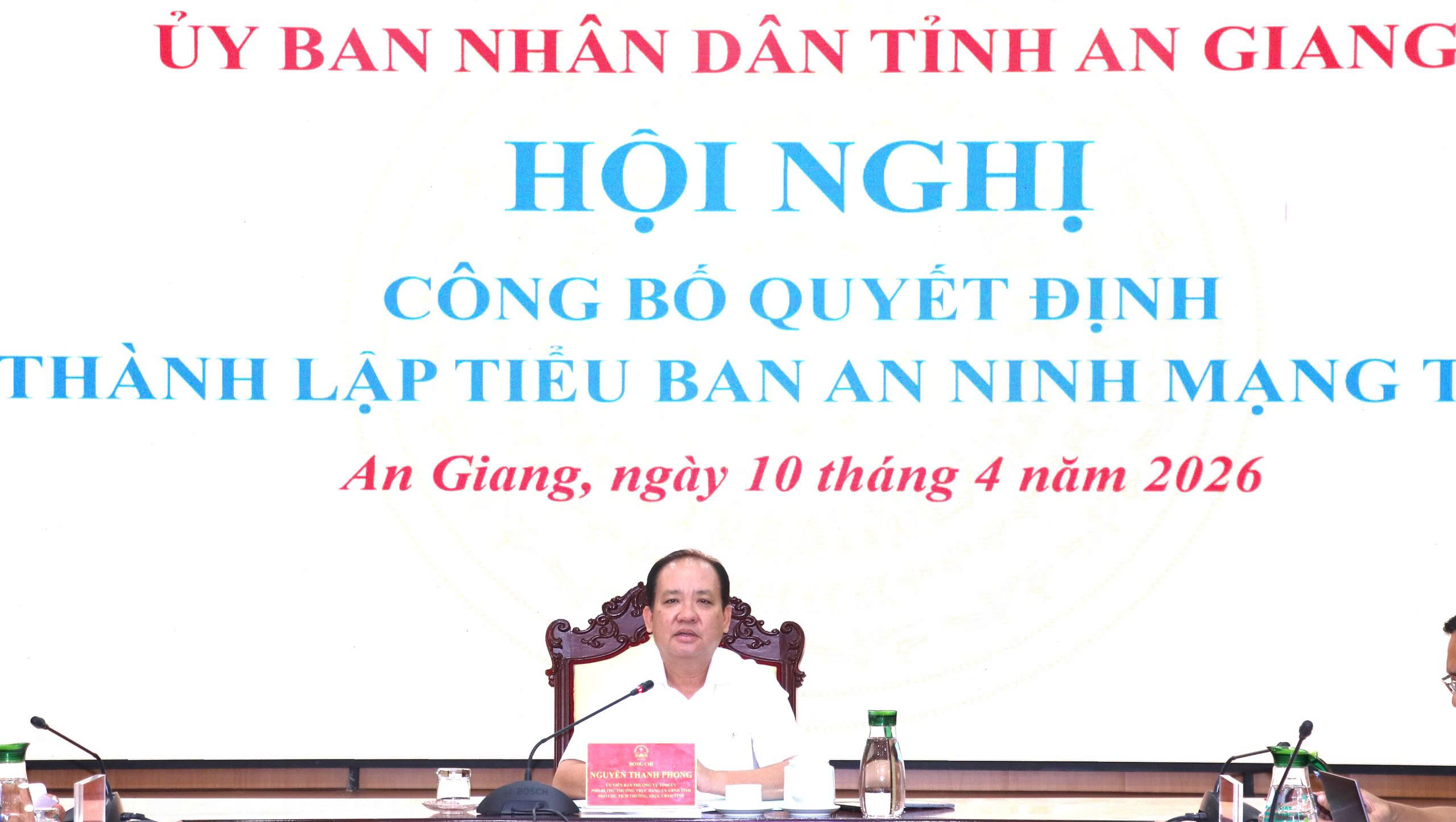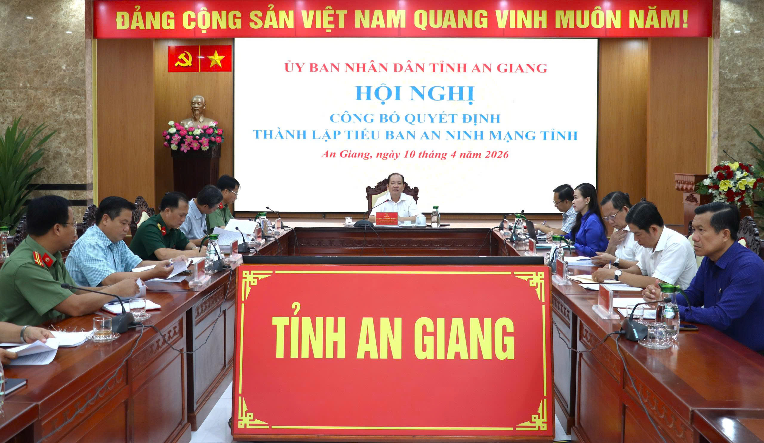 Hội nghị đã công bố Quyết định số 324-QĐ/TU ngày 20/3/2026 của Ban Thường vụ Tỉnh ủy về việc thành lập Tiểu ban An ninh mạng tỉnh An Giang. Theo đó, Tiểu ban An ninh mạng tỉnh là tổ chức phối hợp liên ngành, thực hiện chức năng giúp Ban Thường vụ Tỉnh ủy trong việc lãnh đạo, chỉ đạo, phối hợp giải quyết những công việc quan trọng, liên ngành trong công tác bảo đảm an ninh mạng của tỉnh.