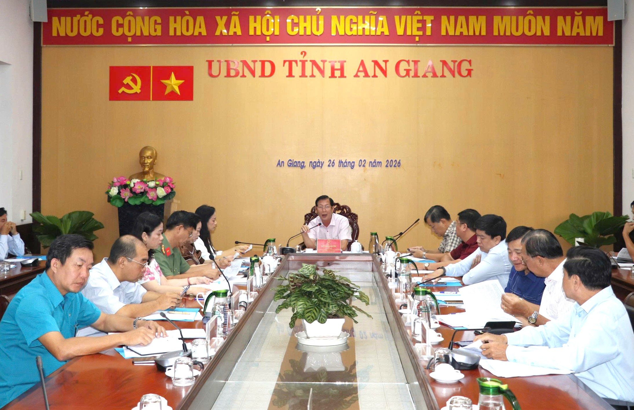 (Cổng TTĐT tỉnh AG) - Ngày 26/02, Phó Chủ tịch UBND tỉnh Lê Văn Phước, Trưởng Tiểu ban Tuyên truyền - Văn hóa thuộc Ban Chỉ đạo cấp tỉnh chuẩn bị, tổ chức các hội nghị, hoạt động của Năm APEC 2027 tại đặc khu Phú Quốc chủ trì cuộc họp nghe báo cáo tình hình triển khai thực hiện Tiểu Đề án tổ chức các hoạt động tuyên truyền - Văn hóa về Diễn đàn APEC 2027 trên địa bàn tỉnh An Giang.