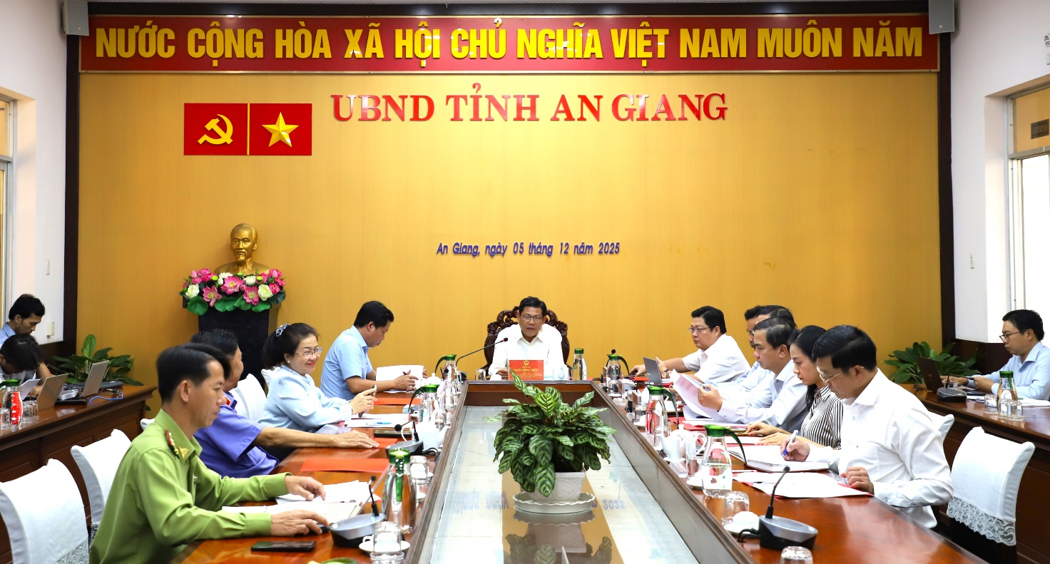 (Cổng TTĐT tỉnh AG)-Chiều ngày 05/12, UBND tỉnh An Giang tổ chức cuộc họp Tổ công tác đặc biệt về kiểm tra, xử lý các hành vi vi phạm pháp luật về lĩnh vực đất đai, lâm nghiệp và xây dựng trên địa bàn đặc khu Phú Quốc (gọi tắt là Tổ công tác đặc biệt).