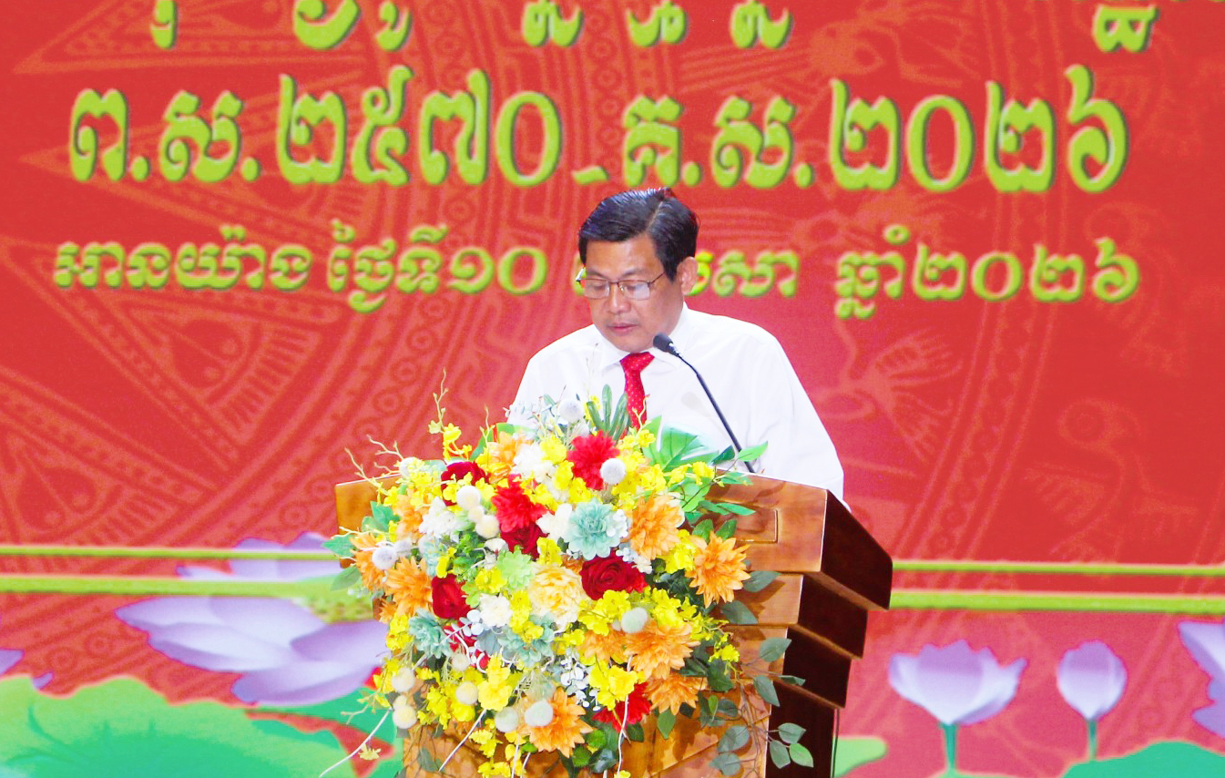 Thay mặt Tỉnh ủy, HĐND, UBND, Ủy ban MTTQ Việt Nam tỉnh An Giang và các lực lượng vũ trang Nhân dân tỉnh, Phó Chủ tịch UBND tỉnh An Giang Ngô Công Thức chúc mừng Tết cổ truyền Chôl Chnăm Thmây của đồng bào Khmer đến các đại biểu.
