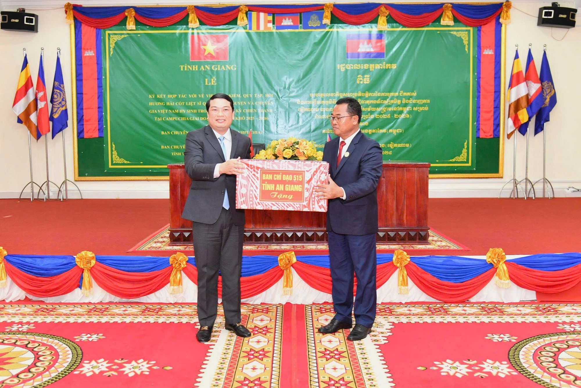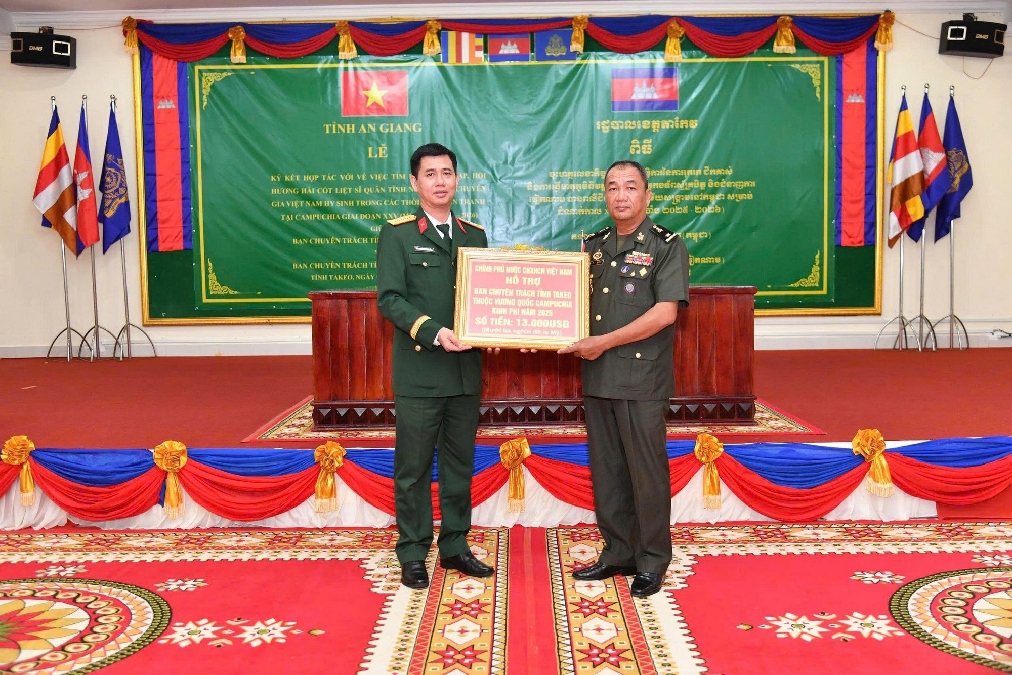 Dịp này, Ban Chuyên trách tỉnh An Giang được ủy quyền của Ban Chuyên trách Chính phủ Việt Nam trao kinh phí hỗ trợ Ban Chuyên trách tỉnh Takeo trong phối hợp tổ chức các hoạt động giúp Đội K93 tìm kiếm, quy tập hài cốt liệt sĩ quân tình nguyện và chuyên gia Việt Nam hy sinh trong các thời kỳ chiến tranh tại Campuchia trên địa bàn tỉnh Preah Sihanouk, mùa khô 2025 - 2026./.