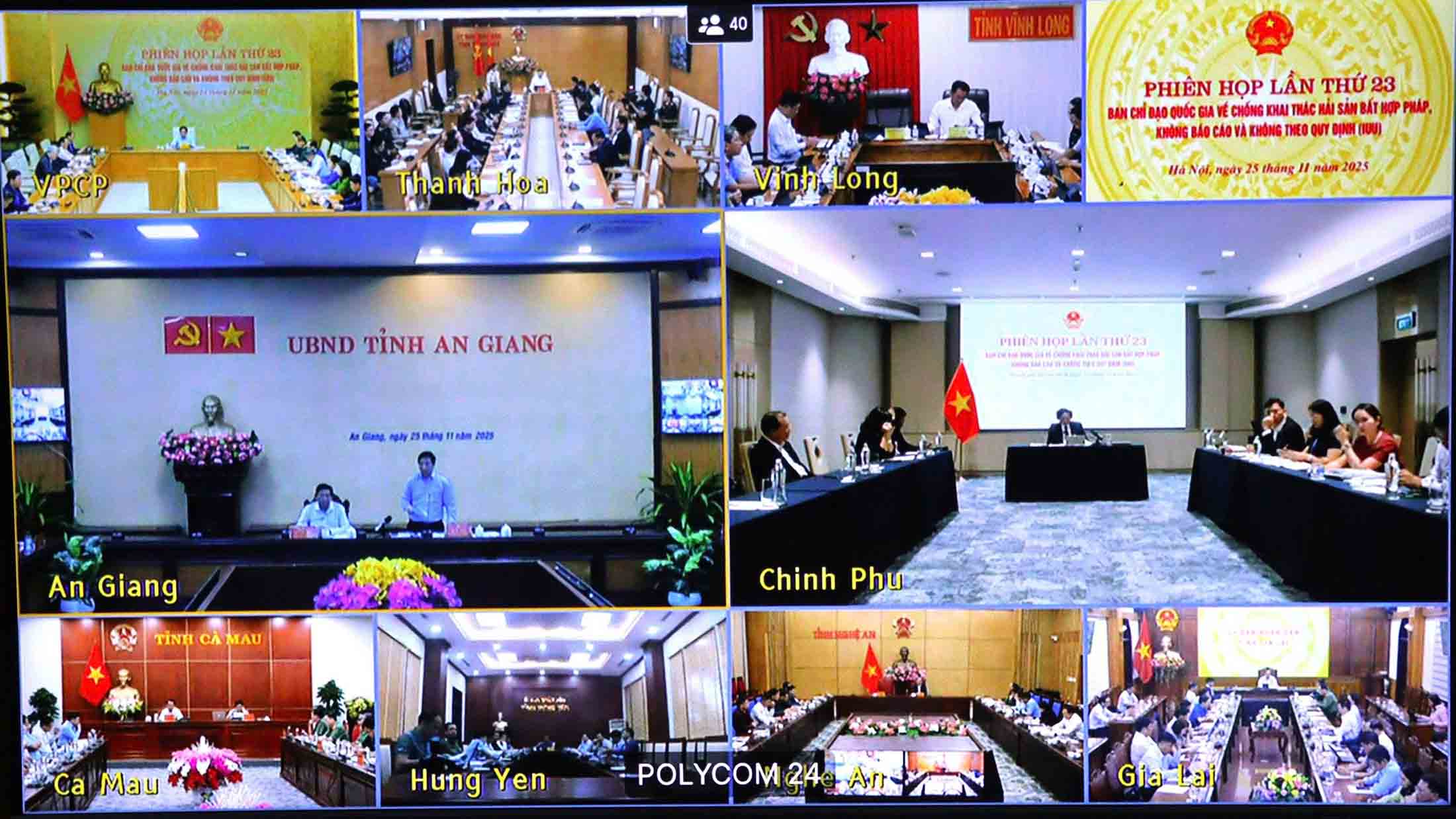 Dự tại điểm cầu UBND tỉnh An Giang, có Ủy viên dự khuyết Ban Chấp hành Trung ương Đảng, Phó Bí thư Tỉnh ủy, Chủ tịch UBND tỉnh An Giang Hồ Văn Mừng; Tỉnh ủy viên, Phó Chủ tịch UBND tỉnh An Giang Ngô Công Thức; thành viên Ban Chỉ đạo chống khai thác IUU tỉnh dự tại điểm cầu UBND tỉnh.