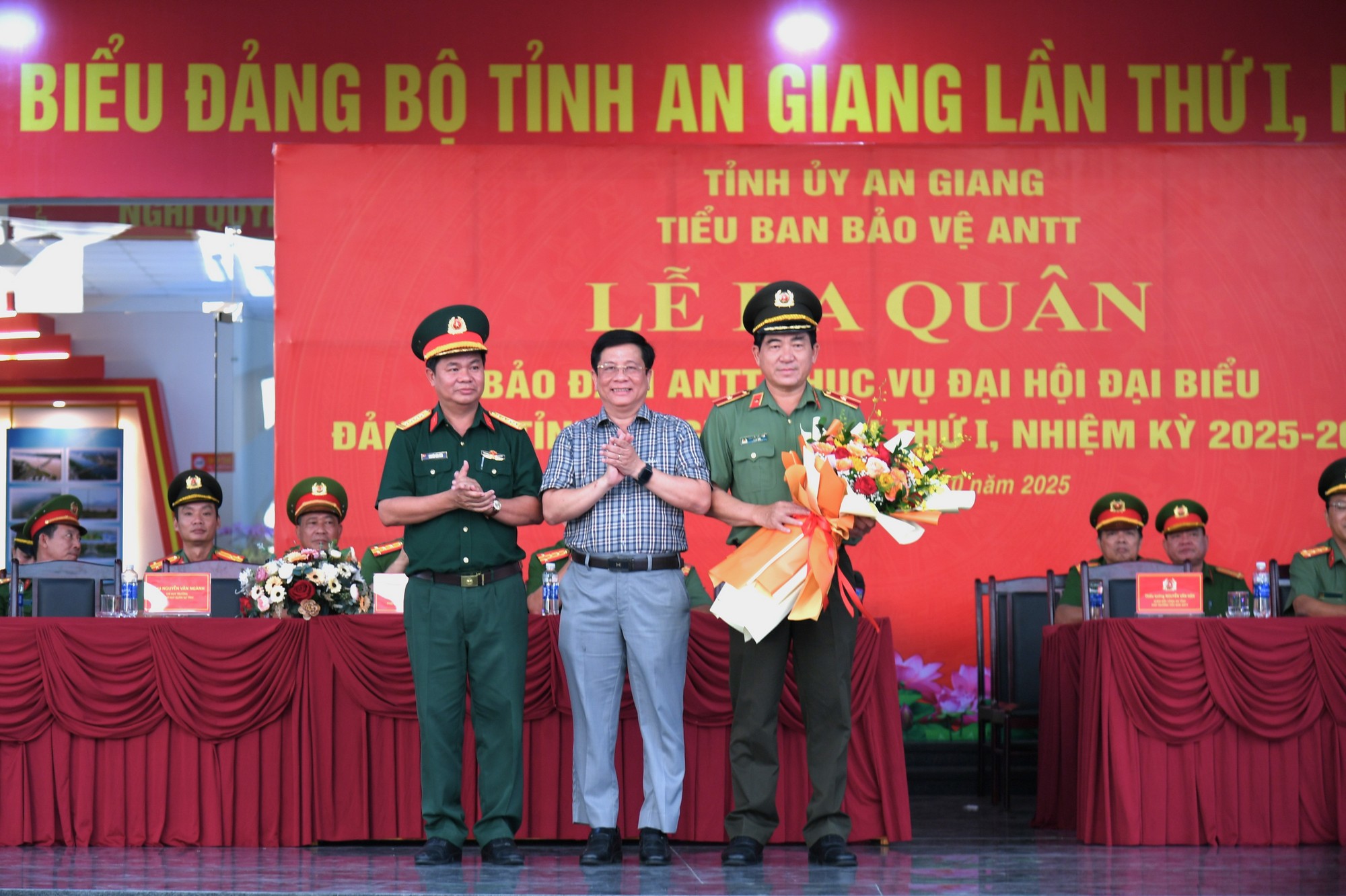 Đồng chí Hồ Văn Mừng, Phó Bí thư Tỉnh ủy – Chủ tịch UBND tỉnh, Trưởng Tiểu ban Bảo vệ An Ninh trật tự Đại hội dự và chủ trì buổi ra quân. Cùng dự có Thiếu tướng Nguyễn Văn Hận, ủy viên Ban Thường vụ Tỉnh ủy – Giám đốc Công an tỉnh An Giang.