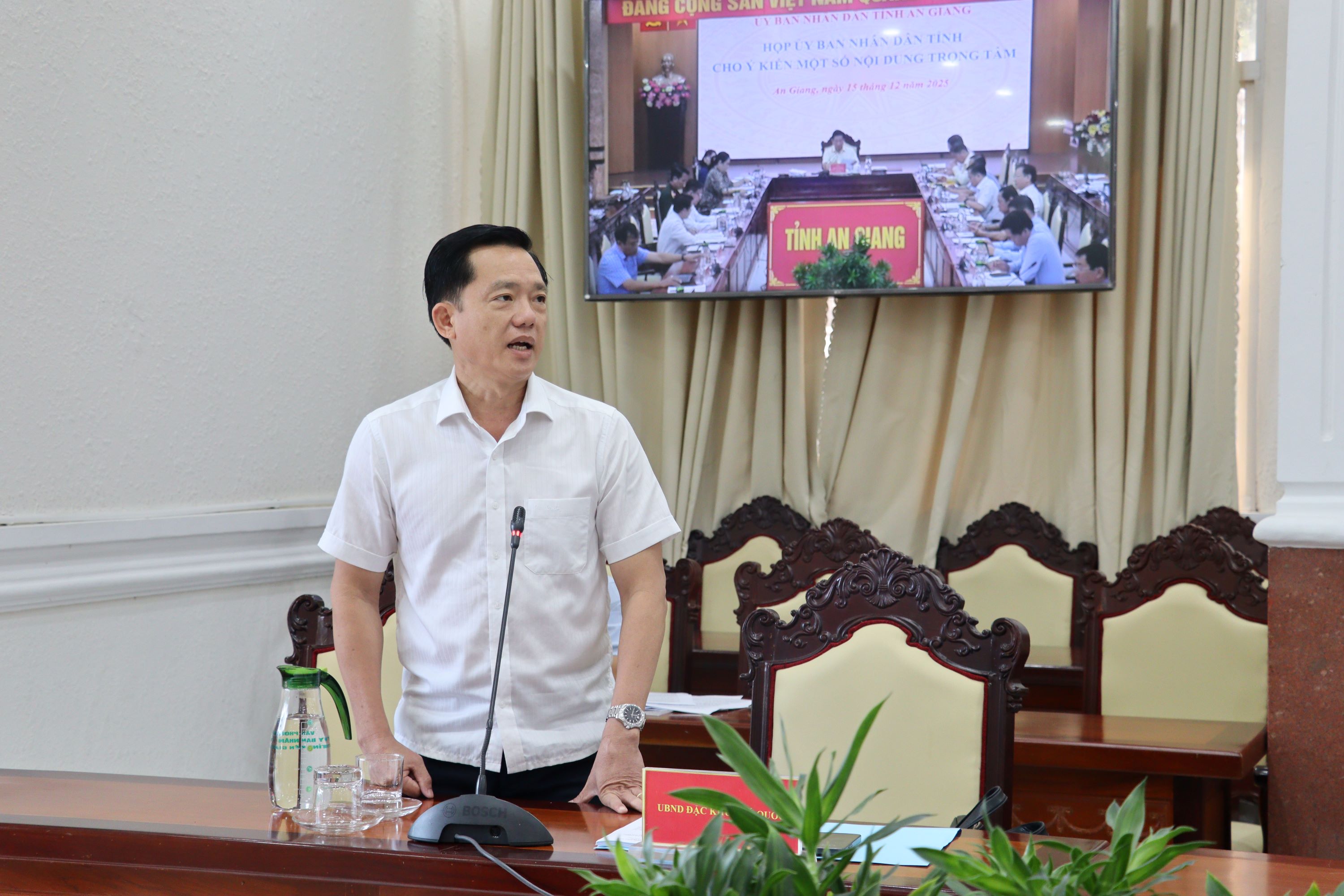 Tại cuộc họp, UBND tỉnh An Giang cho ý kiến các nội dung: báo cáo thông qua Đề án chính quyền 03 đặc khu: Phú Quốc, Kiên Hải, Thổ Châu; báo cáo xin ý kiến việc tổ chức Đoàn công tác dự Đại hội thi đua yêu nước; báo cáo dự án Đường kết nối Rạch Giá - Long Xuyên; báo cáo việc lựa chọn Logo du lịch và Slogan du lịch tỉnh An Giang; dự thảo tờ trình, nghị quyết bảng giá đất năm 2026 tỉnh An Giang.