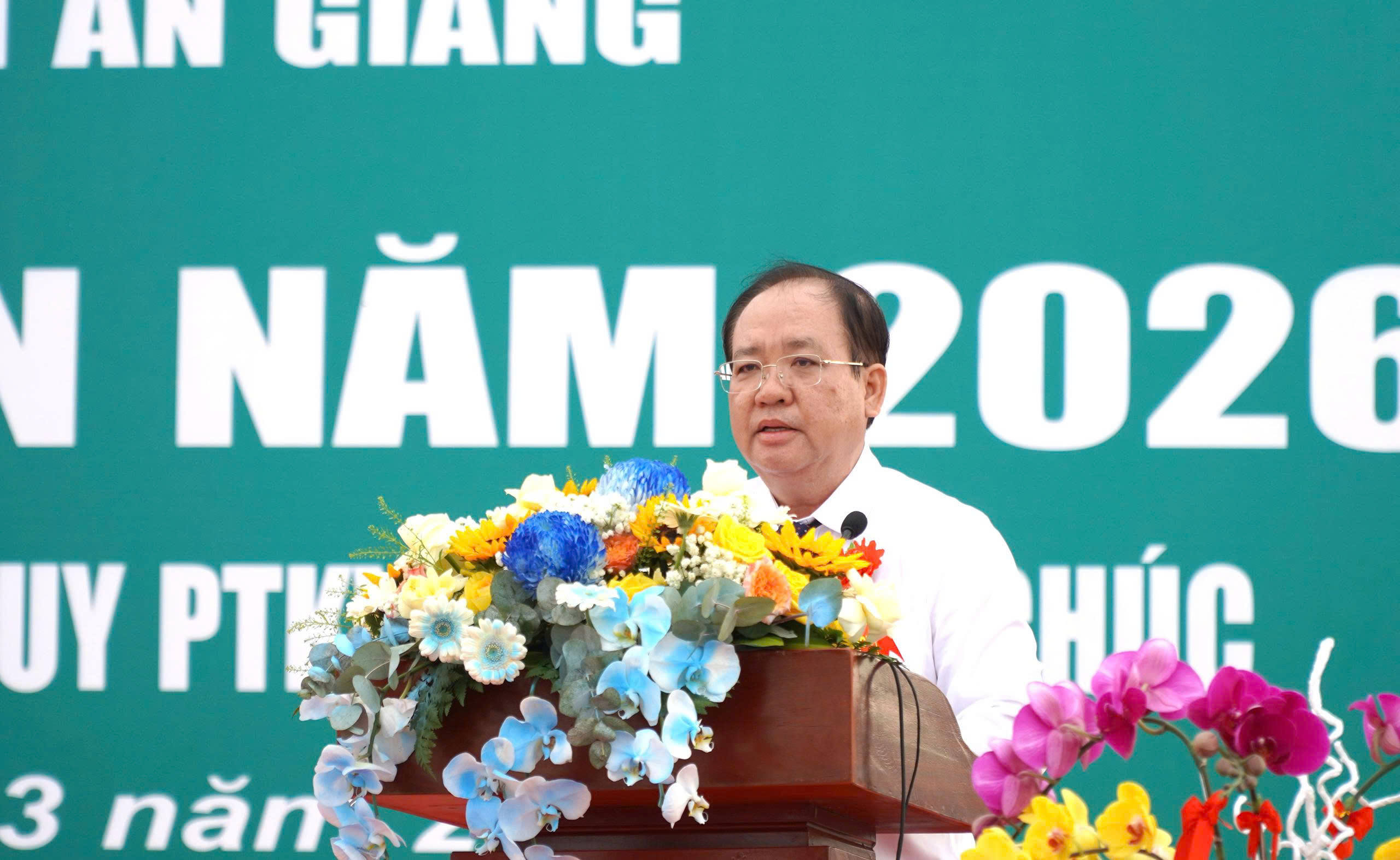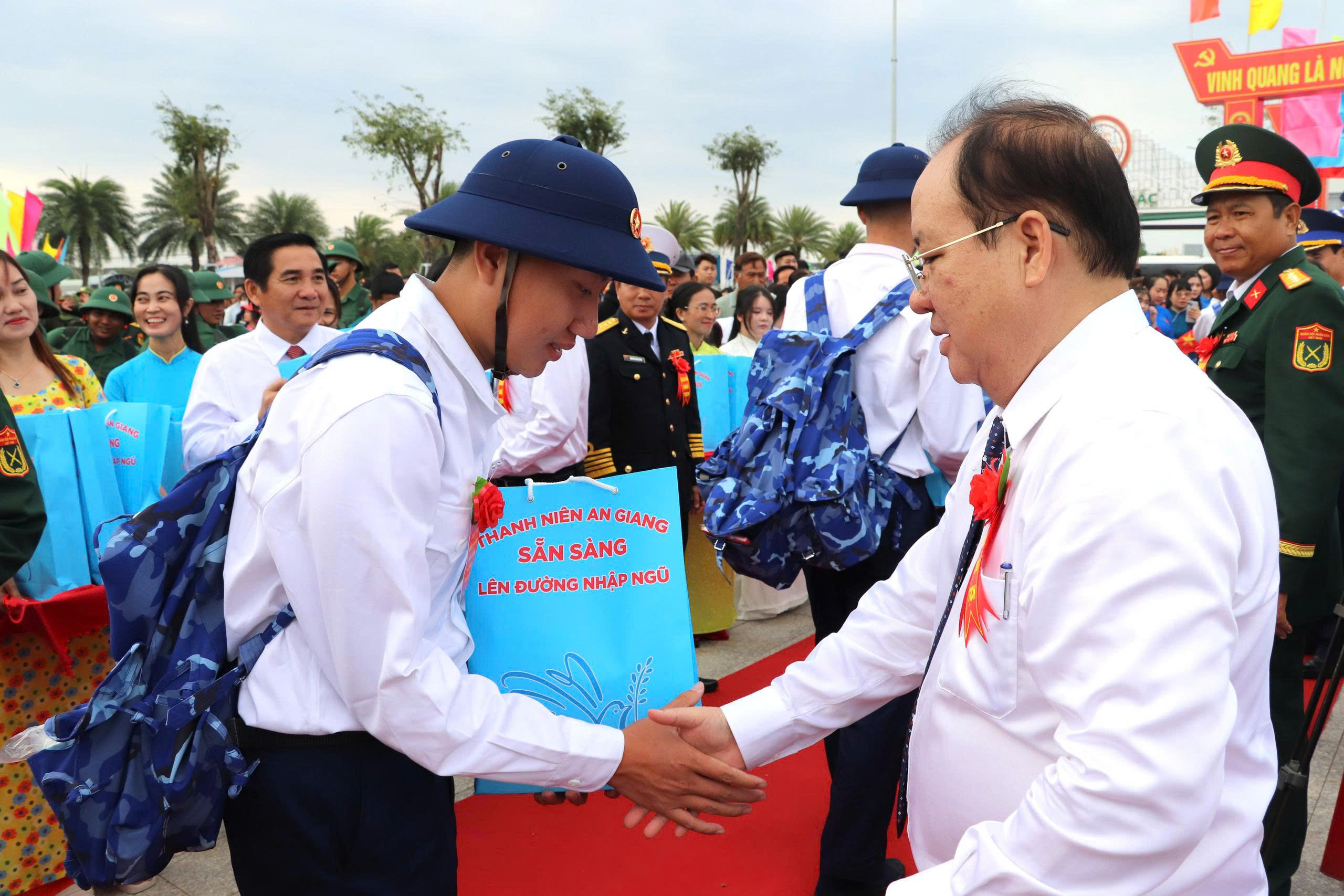 “Phía sau các em là quê hương An Giang trung dũng, kiên cường; là gia đình, người thân luôn dõi theo; là Đảng bộ, chính quyền và Nhân dân tỉnh An Giang đã đặt trọn niềm tin vào hành trình vinh dự, tự hào của các em. Dù ở bất cứ đơn vị nào, trên thao trường, bãi tập hay nơi tuyến đầu Tổ quốc, các em hãy luôn tỏa sáng phẩm chất cao đẹp của người lính Bộ đội Cụ Hồ, người chiến sĩ công an nhân dân, vì nước quên thân, vì Nhân dân phục vụ” – ông Nguyễn Thanh Phong nhắn nhủ.