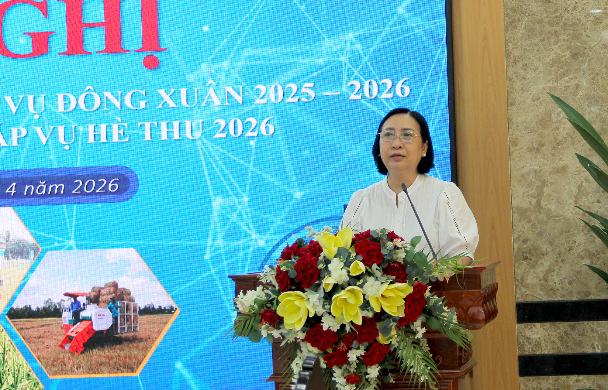 Phát biểu kết luận Hội nghị, Phó Chủ tịch UBND tỉnh Ngô Công Thức nhấn mạnh, vụ Đông Xuân 2025 - 2026 đóng vai trò then chốt trong việc thực hiện mục tiêu tăng trưởng của tỉnh. Tính đến nay, toàn tỉnh đã xuống giống hơn 503.563 ha (đạt 99,58% kế hoạch), với diện tích thu hoạch đạt 81% cùng năng suất ấn tượng khoảng 7,61 tấn/ha. Trước những kết quả khả quan này, lãnh đạo UBND tỉnh đã biểu dương sự nỗ lực vượt bậc của ngành nông nghiệp, sự đồng hành của các doanh nghiệp, hợp tác xã và bà con nông dân trong việc chủ động vượt qua khó khăn, thích ứng với biến động chi phí đầu vào để đạt được thắng lợi chung.