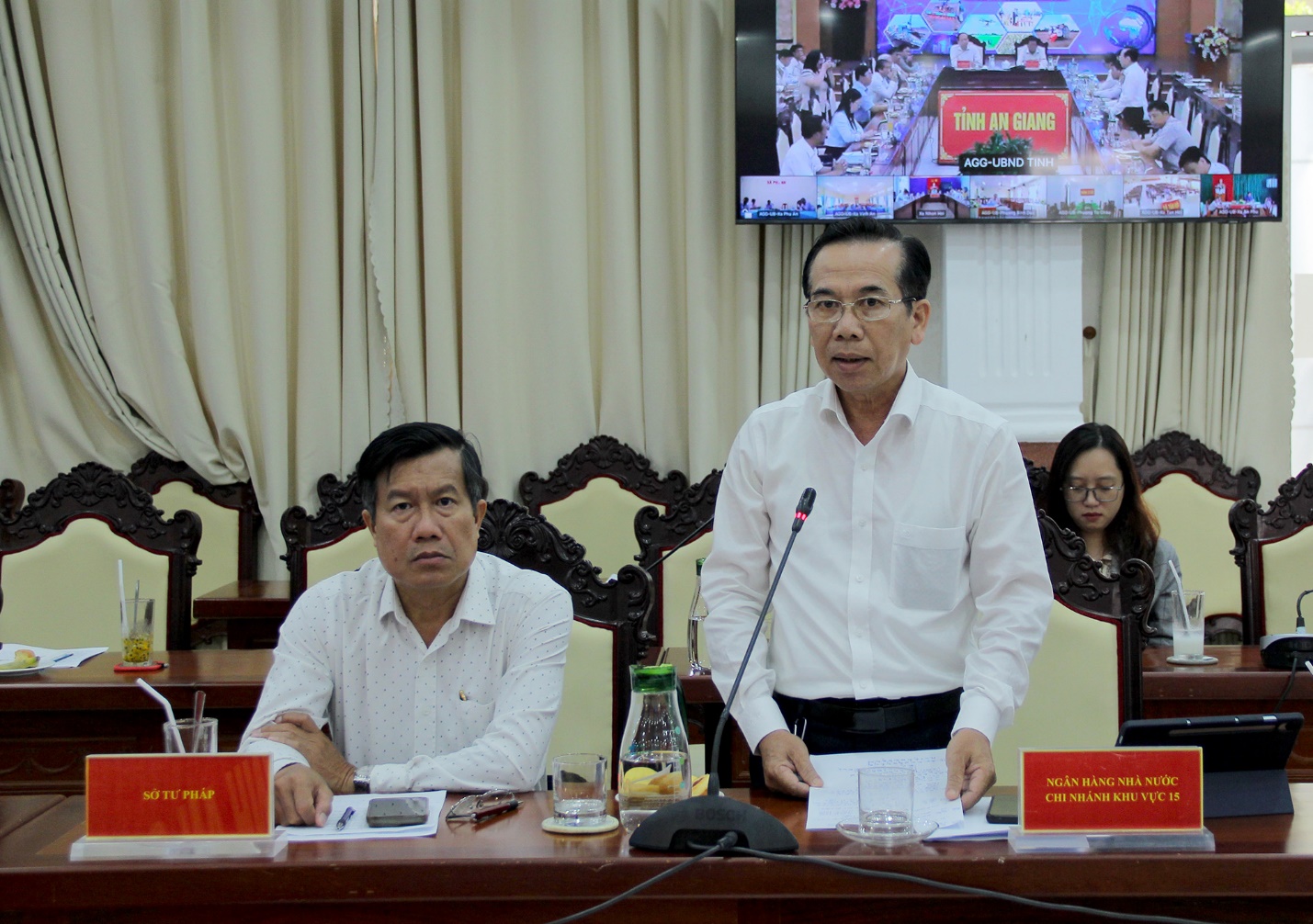 Tham dự tại điểm cầu UBND tỉnh có đại diện lãnh đạo Văn phòng UBND tỉnh; đại diện lãnh đạo các sở, ban, ngành tỉnh, các cơ quan đơn vị có liên quan; đại diện lãnh đạo các đơn vị trực thuộc Sở Nông nghiệp và Môi trường; đại diện lãnh đạo các Doanh nghiệp tiêu biểu có tham gia liên kết sản xuất, tiêu thụ lúa gạo trên địa bàn tỉnh;…