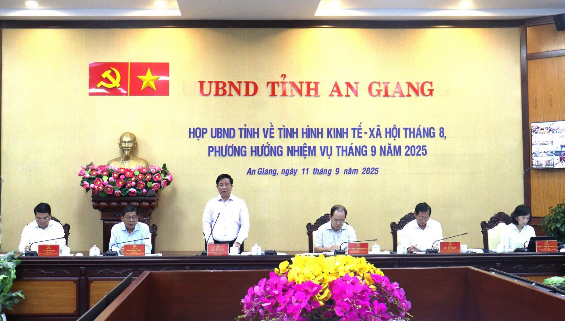 (Cổng TTĐT tỉnh AG)- Ngày 11/9, Ủy viên dự khuyết Ban Chấp hành Trung ương Đảng, Phó Bí thư Tỉnh ủy, Chủ tịch UBND tỉnh An Giang Hồ Văn Mừng chủ trì cuộc họp về tình hình kinh tế - xã hội tháng 8, phương hướng, nhiệm vụ tháng 9 năm 2025 và nghe báo cáo chuyên đề: tiến độ thực hiện các dự án và giải ngân vốn đầu tư công của Sở Tài chính; về nguồn vật liệu phục vụ các dự án Hội nghị cấp cao APEC và công trình trọng điểm và tiến độ xây dựng bảng giá đất của Sở Nông nghiệp và Môi trường. Cùng dự có các Phó Chủ tịch UBND tỉnh; lãnh đạo các sở, ban, ngành. Cuộc họp được kết nối trực tuyến đến 102 xã, phường, đặc khu.