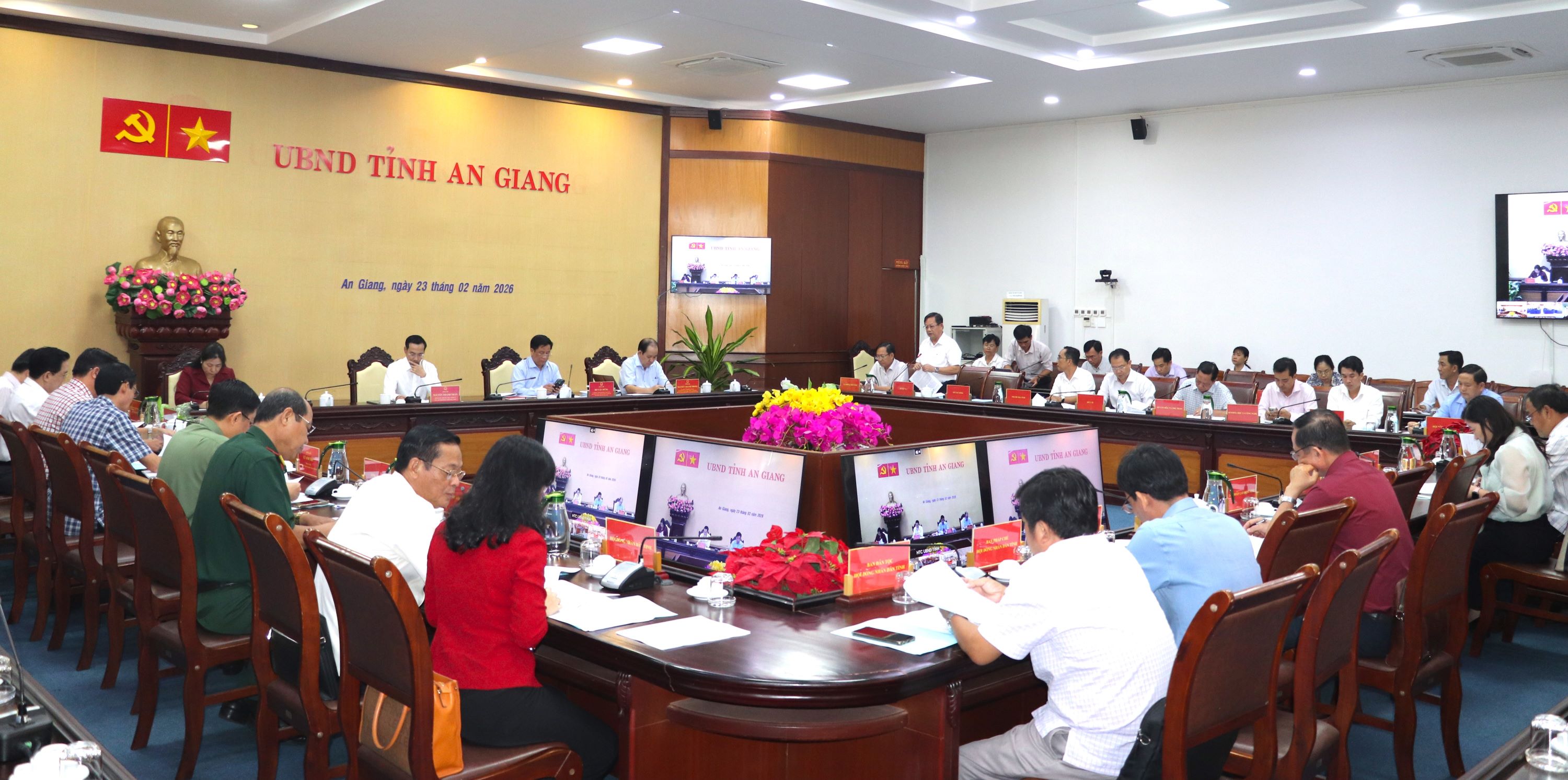(Cổng TTĐT tỉnh AG) - Sáng 23/02, Ủy ban bầu cử tỉnh An Giang tổ chức cuộc họp trực tuyến về công tác chuẩn bị bầu cử đại biểu Quốc hội khóa XVI và đại biểu HĐND các cấp, nhiệm kỳ 2026 - 2031 trên địa bàn tỉnh.
