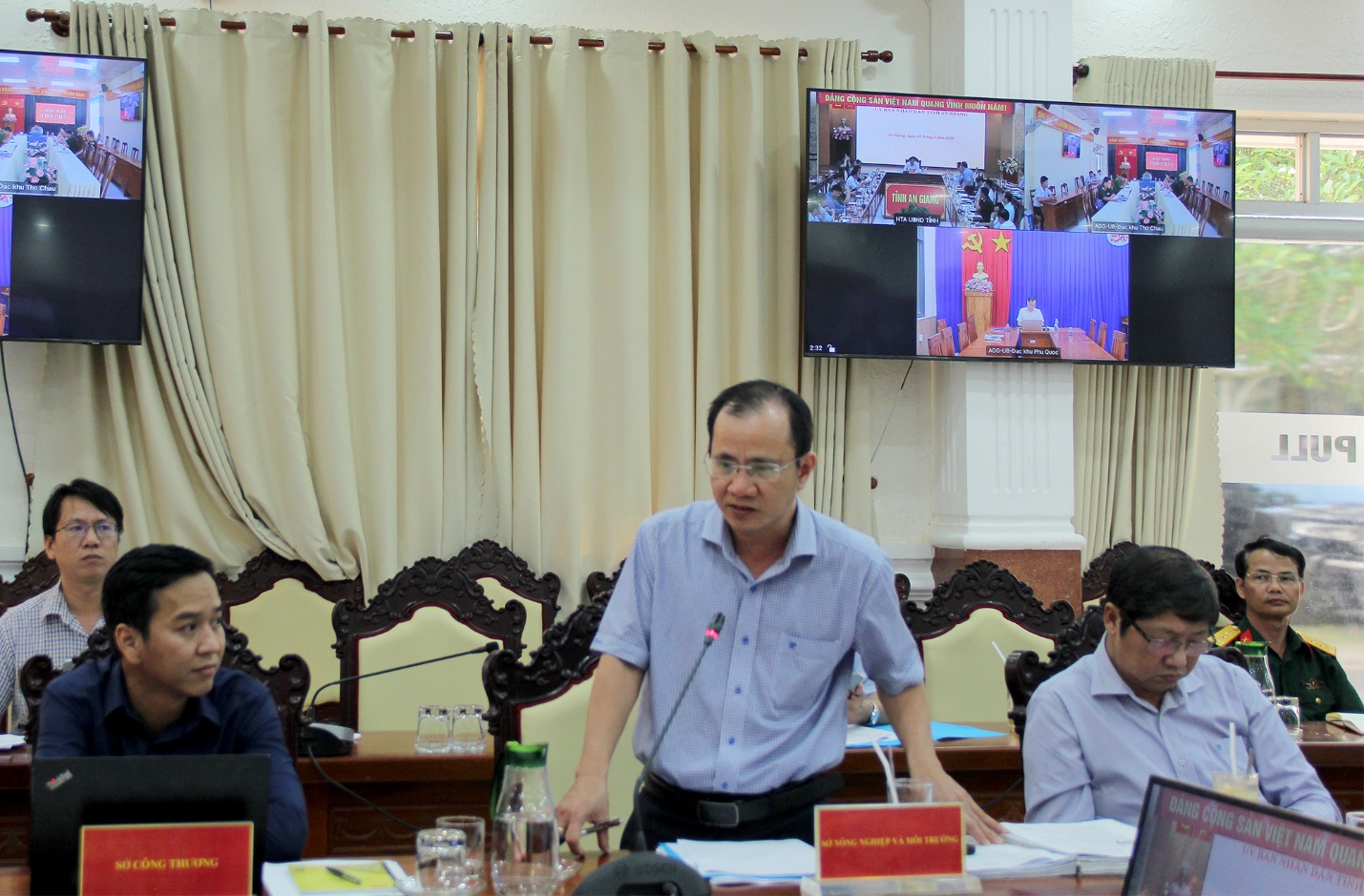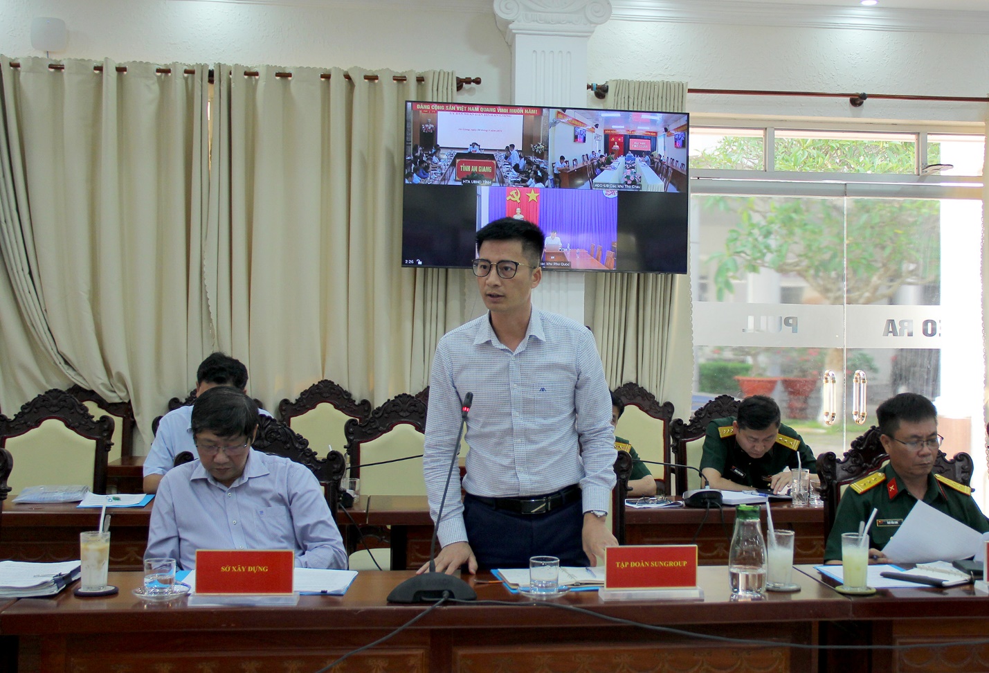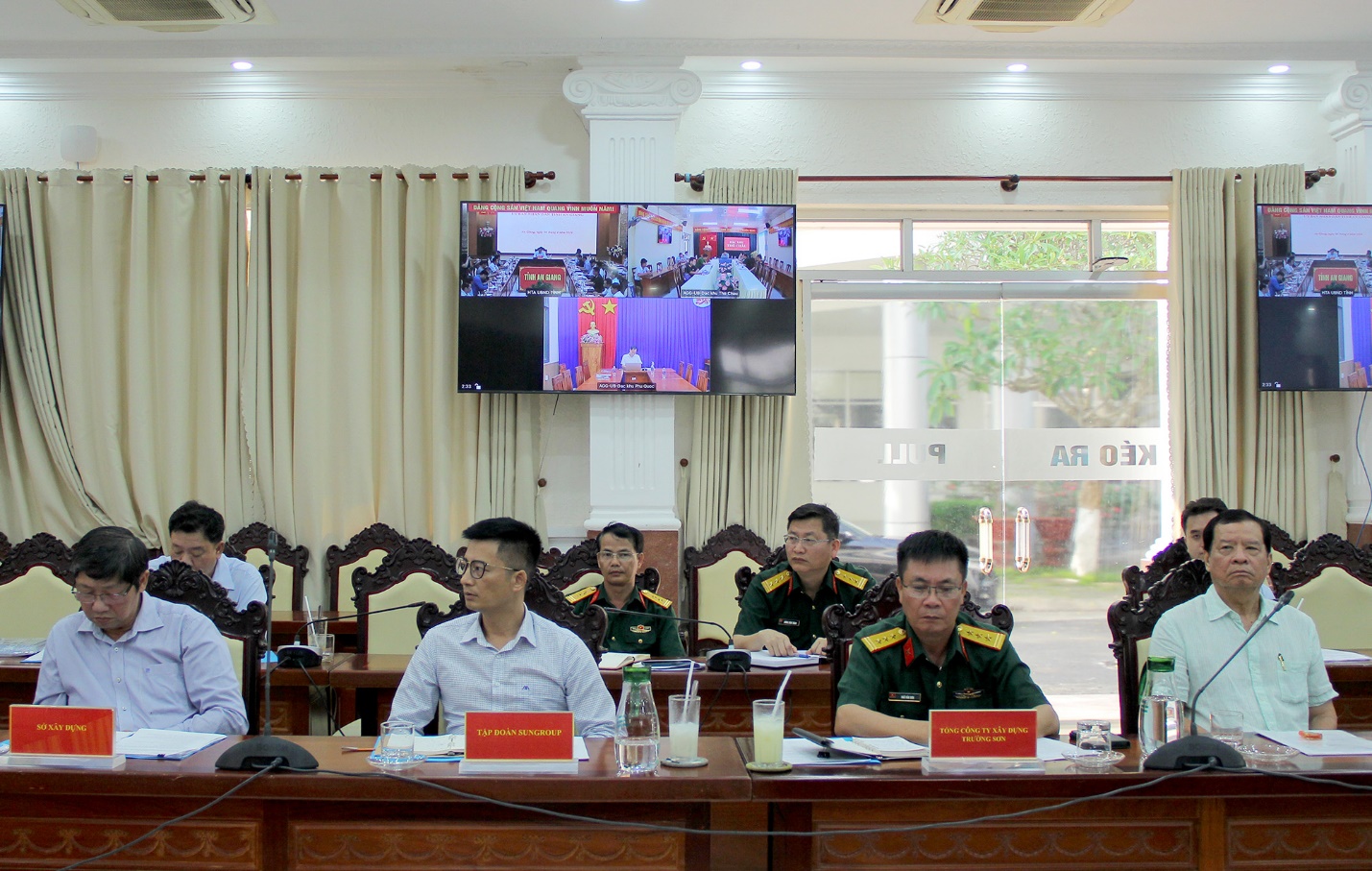 Tham dự buổi họp có đại diện lãnh đạo các sở, ban, ngành tỉnh; đại diện lãnh đạo Ủy ban nhân dân đặc khu Phú Quốc; đại diện lãnh đạo Ủy ban nhân dân đặc khu Thổ Châu; đại diện lãnh đạo Tập đoàn Sun Group; đại diện lãnh đạo Tổng Công ty xây dựng Trường Sơn; đại diện lãnh đạo Ban Quản lý dự án 116 - Bộ Quốc phòng; cùng đại diện lãnh đạo các Công ty là Chủ mỏ cung cấp nguồn vật liệu cho các công trình APEC, công trình trên đảo Thổ Chu, các công trình trọng điểm và các công trình đầu tư công trên địa bàn tỉnh…