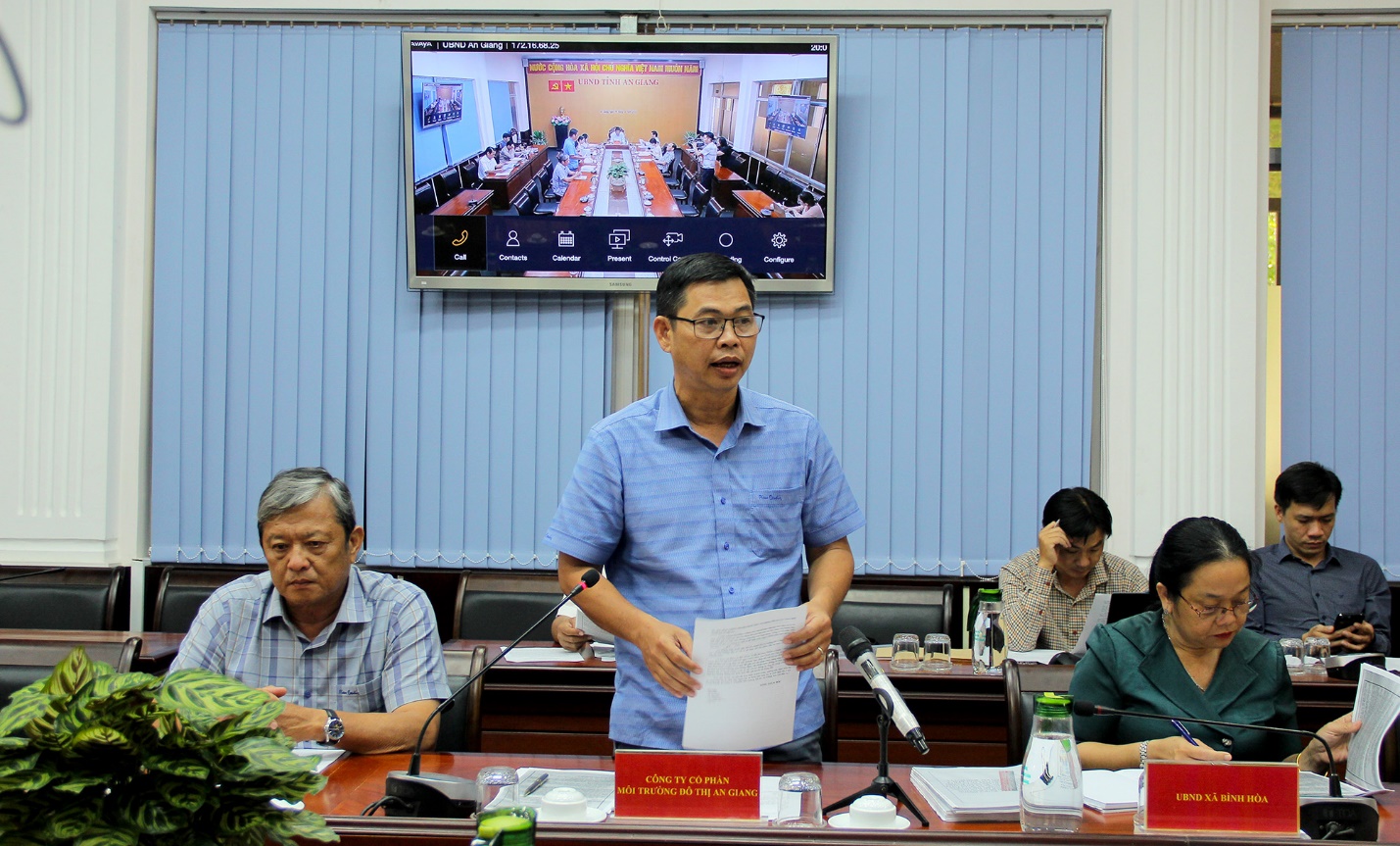 Tham dự cuộc họp có đại diện lãnh đạo các sở, ngành; đại diện lãnh đạo UBND xã Bình Hòa; đại diện lãnh đạo Công ty Cổ phần Môi trường Đô thị An Giang; đại diện lãnh đạo Công ty Cổ phần Thương mại và Đầu tư Huy Ngọc Hưng; Công ty Cổ phần TSN Hòn Đất; Công ty TNHH Mai Trần II; Công ty TNHH Bất động sản Tâm Hằng; Công ty TNHH Xử lý rác thải Môi Trường Xanh Kiên Lương.