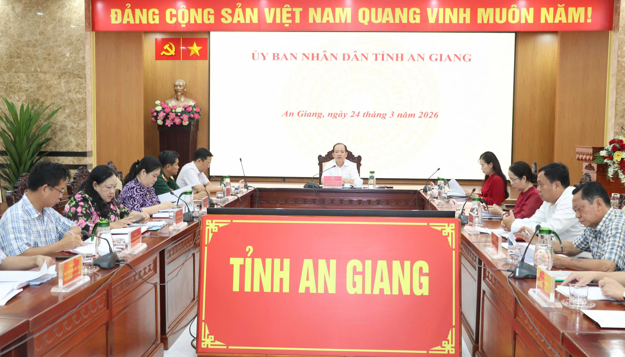 (Cổng TTĐT tỉnh AG) – Ngày 24/3, Ủy viên Ban Thường vụ Tỉnh ủy, Phó Chủ tịch Thường trực UBND tỉnh Nguyễn Thanh Phong chủ trì cuộc họp nghe báo cáo, thông qua các đề án cụ thể hóa Chương trình hành động thực hiện Nghị quyết Đại hội Đảng bộ tỉnh, Đại hội Đảng bộ UBND tỉnh (lần 03).