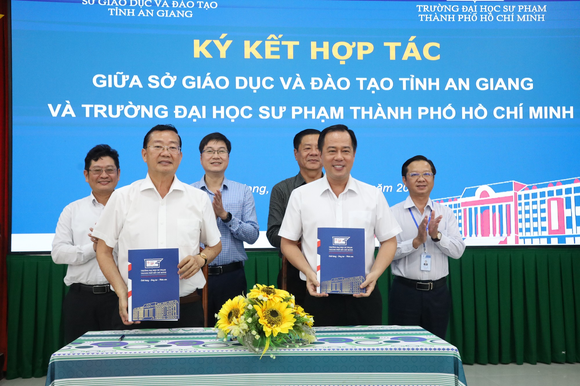 Tại hội nghị, Sở Giáo dục và Đào tạo tỉnh An Giang và Trường Đại học Sư phạm TP. Hồ Chí Minh ký kết hợp tác chuyển đổi số, đào tạo, bồi dưỡng, hỗ trợ chuyên môn, giai đoạn 2026-2030.