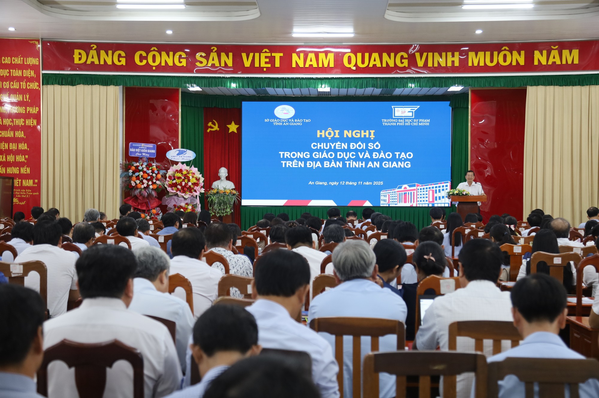 (Cổng TTĐT tỉnh AG)- Ngày 12/11, Sở Giáo dục và Đào tạo tỉnh An Giang phối hợp Trường Đại học Sư phạm TP. Hồ Chí Minh tổ chức hội nghị chuyển đổi số trong giáo dục và đào tạo trên địa bàn tỉnh An Giang.
