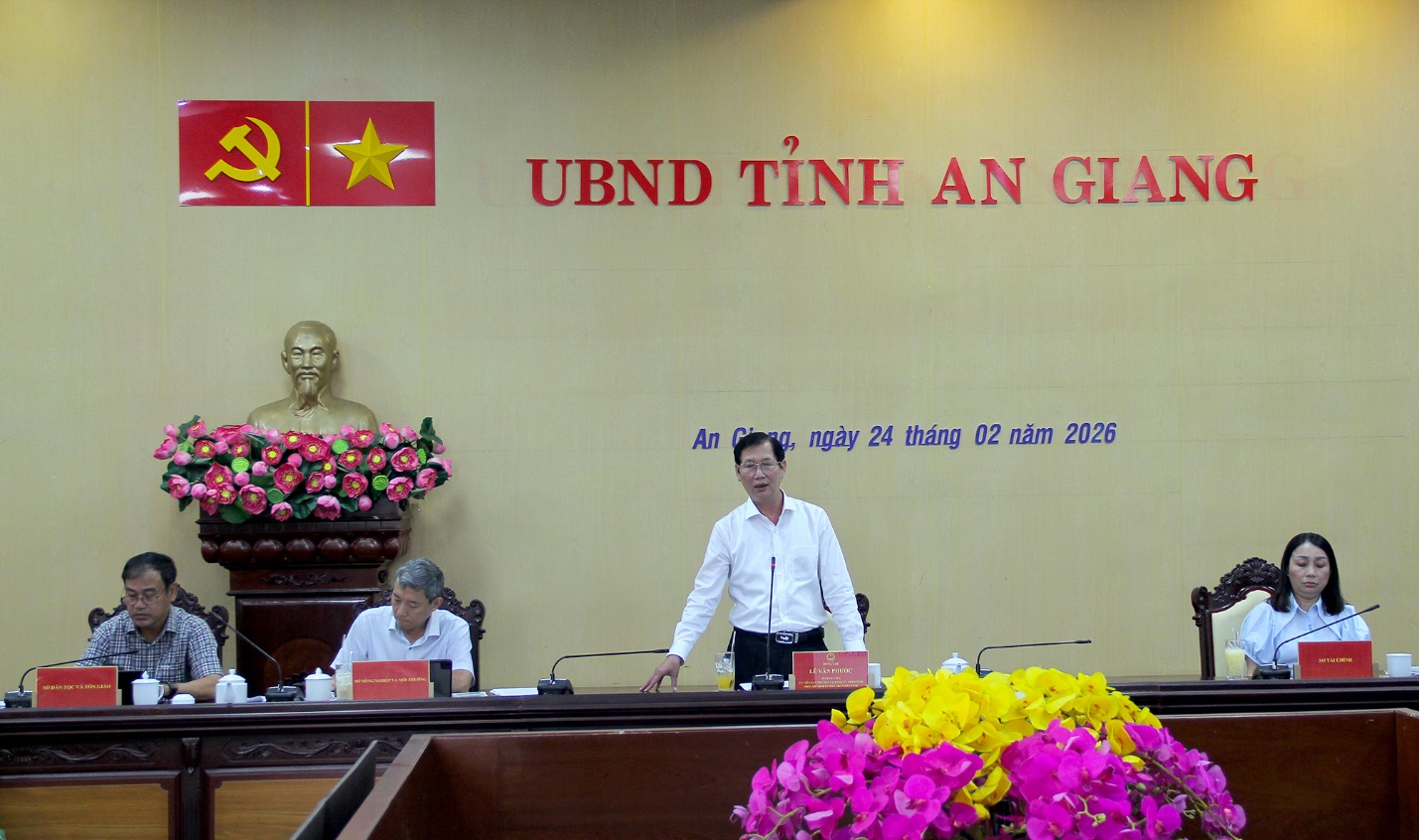 (Cổng TTĐT tỉnh AG)- Chiều 24/02, Phó Chủ tịch Ủy ban nhân dân tỉnh, Phó Trưởng ban Chỉ đạo các Chương trình mục tiêu quốc gia tỉnh Lê Văn Phước chủ trì Hội nghị tổng kết công tác thực hiện các Chương trình mục tiêu quốc gia năm 2025 và kế hoạch triển khai công tác năm 2026. Hội nghị được tổ chức dưới hình thức trực tiếp kết hợp trực tuyến.