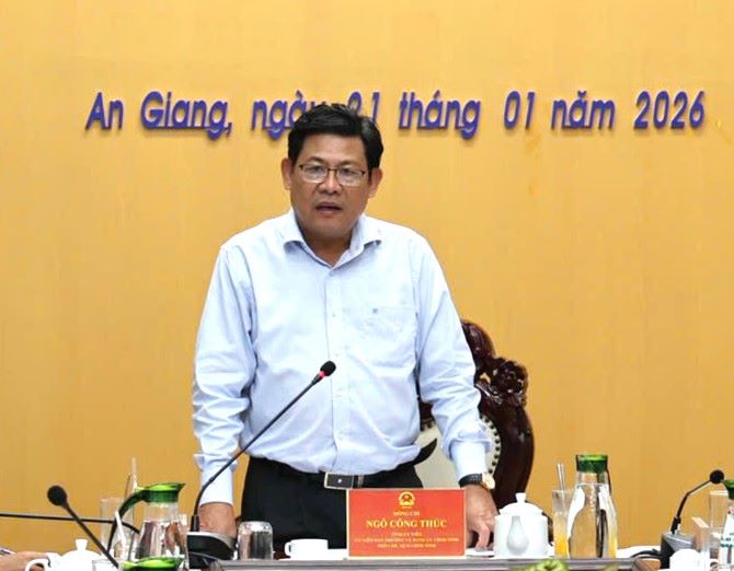 (Cổng TTĐT tỉnh AG) - Chiều ngày 21/01, Tỉnh ủy viên, Phó Chủ tịch UBND tỉnh An Giang Ngô Công Thức chủ trì cuộc họp đánh giá tình hình thực hiện dự án nhà ở xã hội trên địa bàn tỉnh. Thành viên Ban Chỉ đạo về chính sách nhà ở và thị trường bất động sản trên địa bàn tỉnh An Giang theo Quyết định số 2309/QĐ-UBND ngày 11/12/2025; Công ty Cổ phần Phú Cường Hoàng Gia cùng tham dự; trực tuyến với Ban Quản lý Khu kinh tế Phú Quốc.