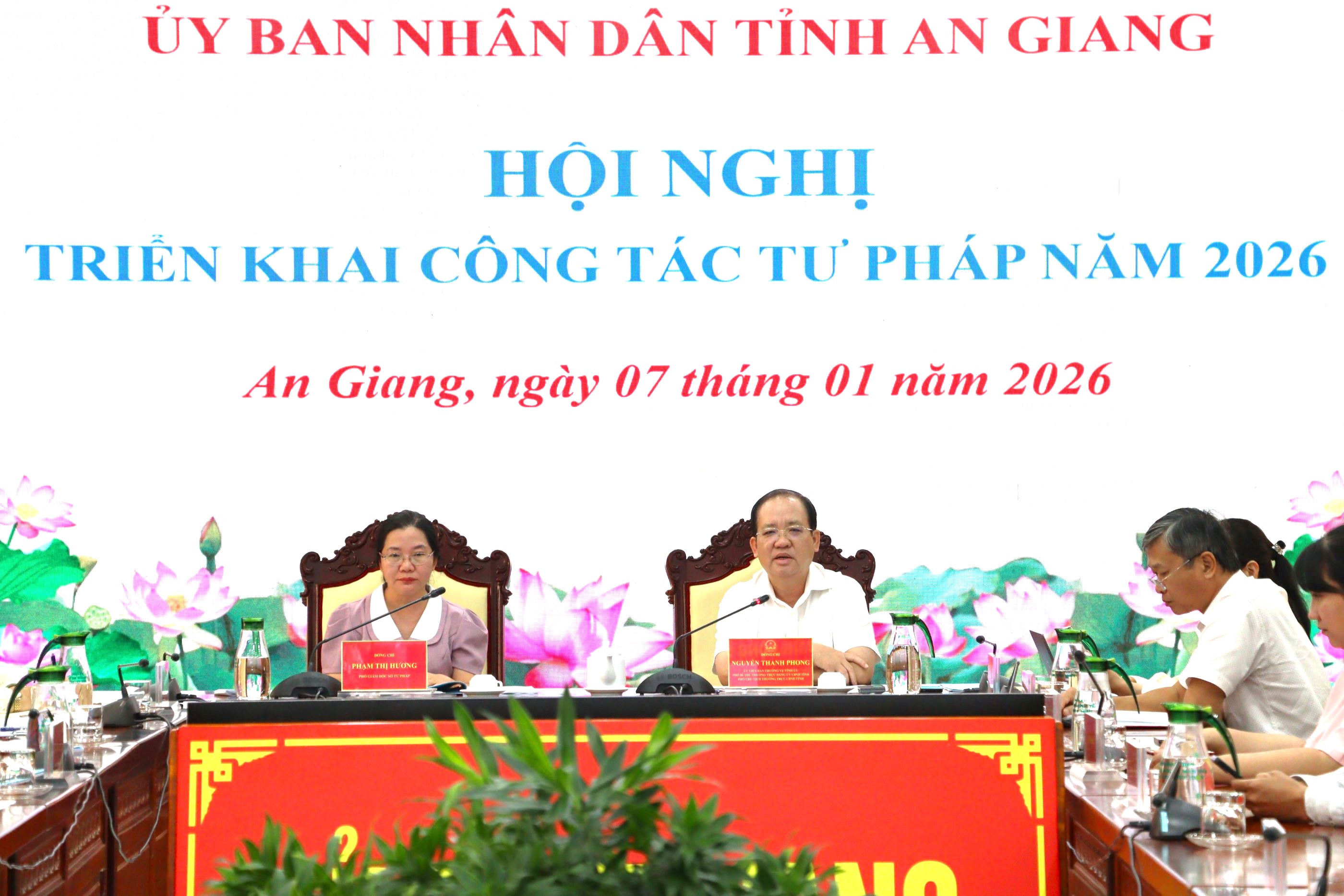 (Cổng TTĐT tỉnh AG) - Sáng 7/01, Sở Tư pháp tổ chức Hội nghị trực tuyến triển khai công tác tư pháp năm 2026 và định hướng nhiệm kỳ 2026-2030. Ủy viên Ban Thường vụ Tỉnh ủy, Phó Chủ tịch Thường trực UBND tỉnh Nguyễn Thanh Phong dự và chỉ đạo hội nghị.
