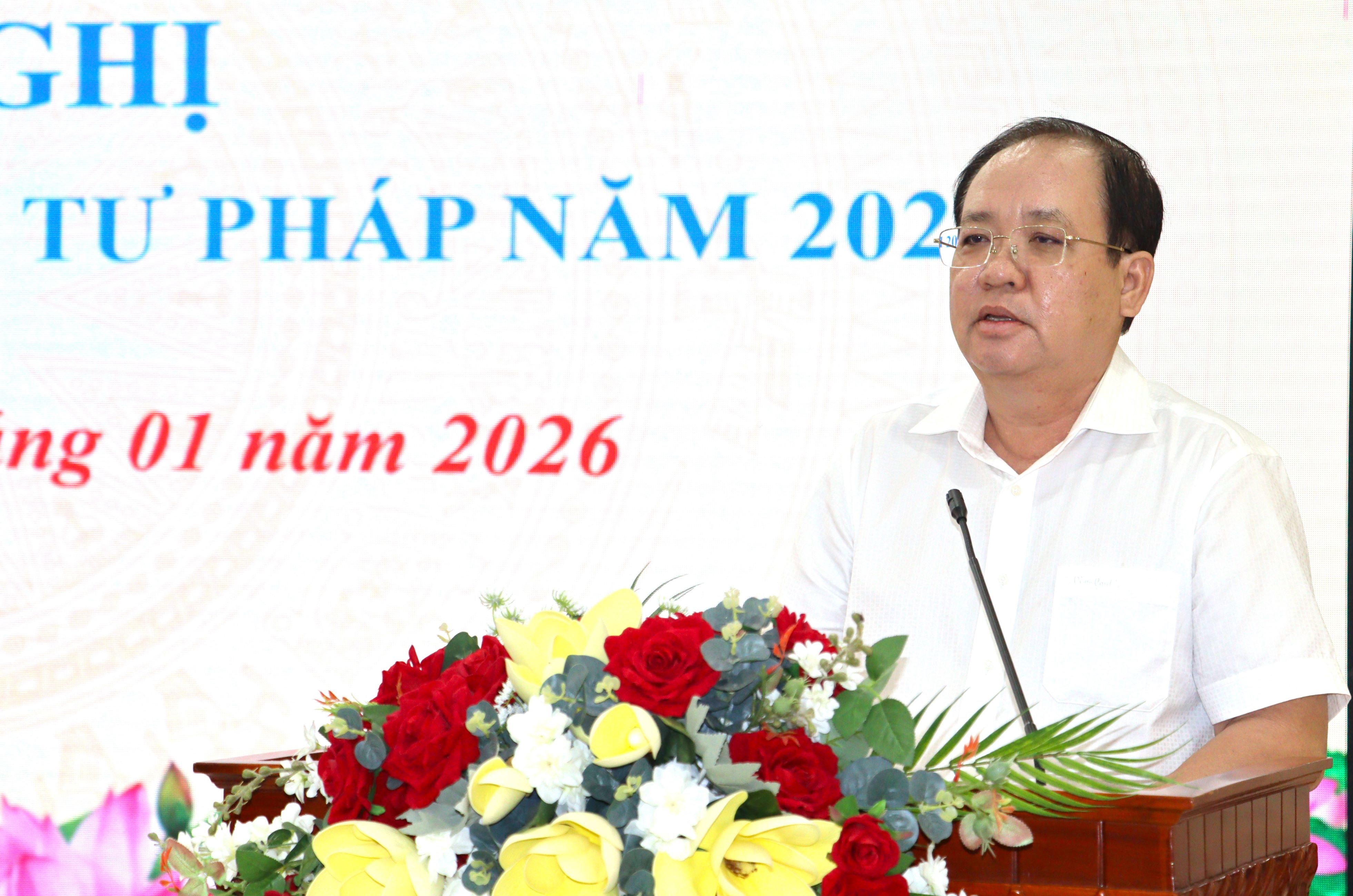 Phó Chủ tịch Thường trực UBND tỉnh Nguyễn Thanh Phong cho biết năm 2026 là năm đầu tổ chức thực hiện Kế hoạch phát triển kinh tế - xã hội 5 năm 2026 – 2030, với mục tiêu tăng trưởng 02 con số, Trung ương và tỉnh sẽ tiếp tục có nhiều chủ trương, chính sách mới với quyết tâm chính trị rất cao để thúc đẩy phát triển kinh tế - xã hội hoàn thành mục tiêu đã đề ra; trong đó hoàn thiện thể chế, xây dựng Nhà nước pháp quyền được xem một trong những đột phá chiến lược được cụ thể hóa thông qua Nghị quyết số 66-NQ/TW của Bộ Chính trị.