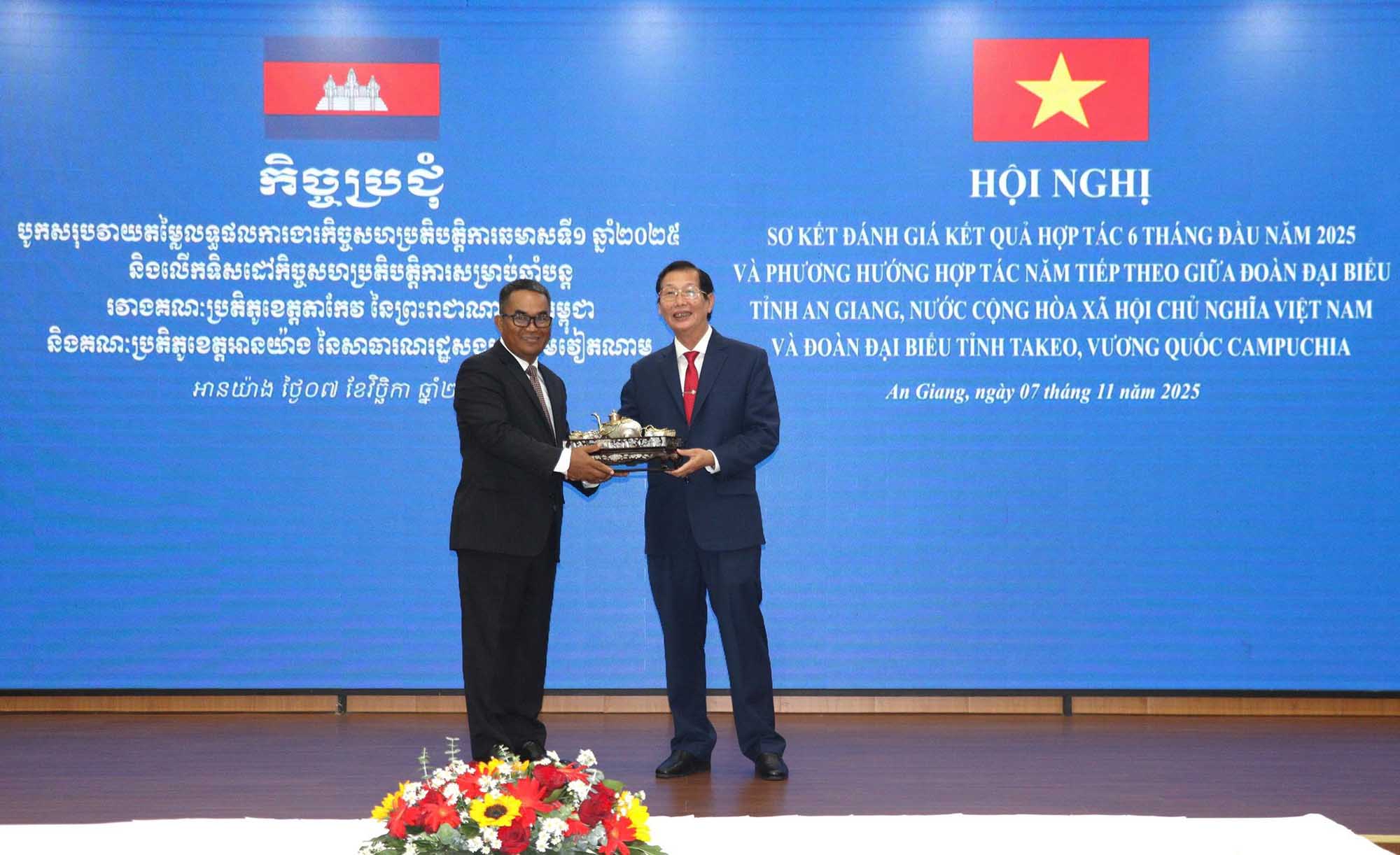 Phó Chủ tịch UBND tỉnh An Giang Lê Văn Phước cho biết trong thời gian vừa qua với sự hợp tác chặt chẽ của các sở, ngành tỉnh An Giang và tỉnh Takeo đạt hiệu quả cao các nội dung đã ký kết kể từ Hội nghị tổng kết kết quả hợp tác năm 2024 diễn ra tại tỉnh Takeo. Góp phần phát triển kinh tế - xã hội, cải thiện đời sống nhân dân hai bên, đặc biệt là cư dân biên giới, từ đó góp phần xây dựng đường biên giới Việt Nam - Campuchia ổn định, hòa bình, hữu nghị và hợp tác cùng phát triển.