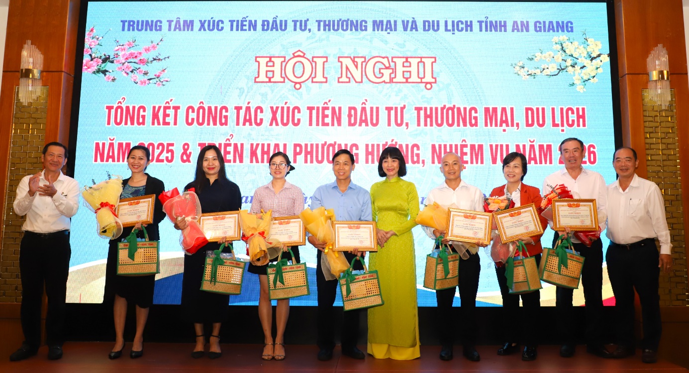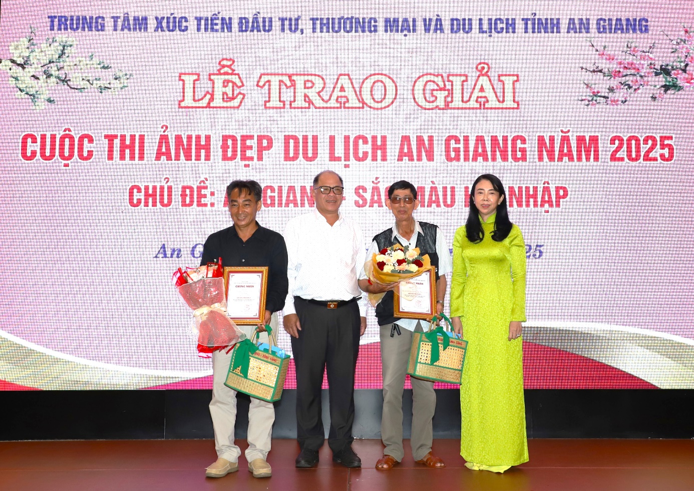 Nhân dịp này, Trung tâm Xúc tiến Đầu tư, Thương mại và Du lịch tỉnh trao giải Cuộc thi ảnh đẹp du lịch An Giang năm 2025, với chủ đề “An Giang - Sắc màu Hội nhập” cho các tác giả đoạt giải, gồm: 02 giải Nhì, 01 giải Ba, 05 giải Khuyến khích và 02 giải Phụ; tặng 36 Giấy khen cho các doanh nghiệp, báo chí đã tích cực tham gia các hoạt động xúc tiến đầu tư, thương mại và du lịch tỉnh An Giang năm 2025.