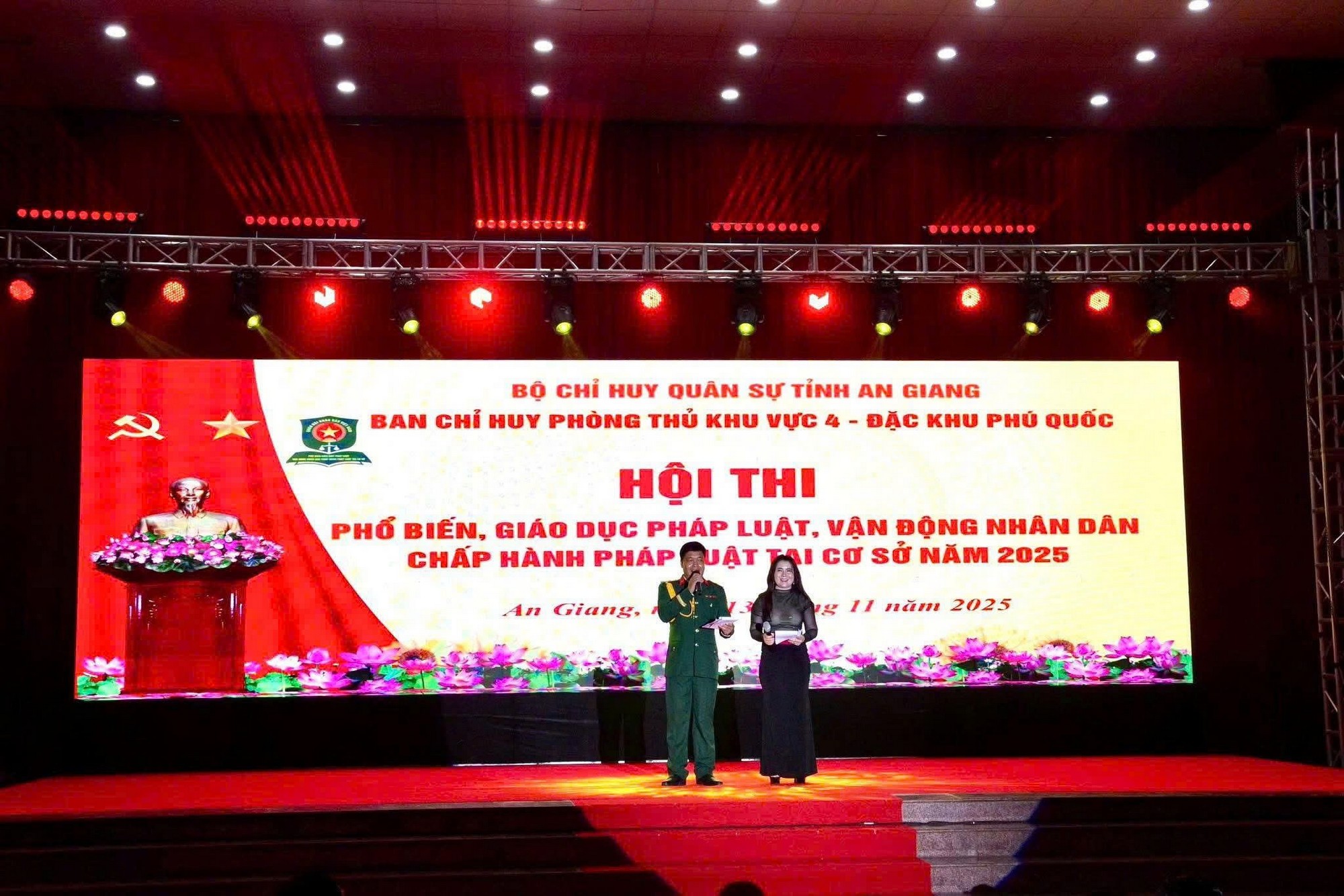(Cổng TTĐT tỉnh AG)- Tối ngày 13/11, Ban Chỉ huy Phòng thủ khu vực 4 - Đặc khu Phú Quốc phối hợp Đoàn TNCS Hồ Chí Minh Đặc khu Phú Quốc, Trường THPT Dương Đông, Lữ đoàn 950, Quân khu 9 long trọng tổ chức Hội thi Phổ biến, giáo dục pháp luật, vận động nhân dân chấp hành pháp luật tại cơ sở năm 2025.