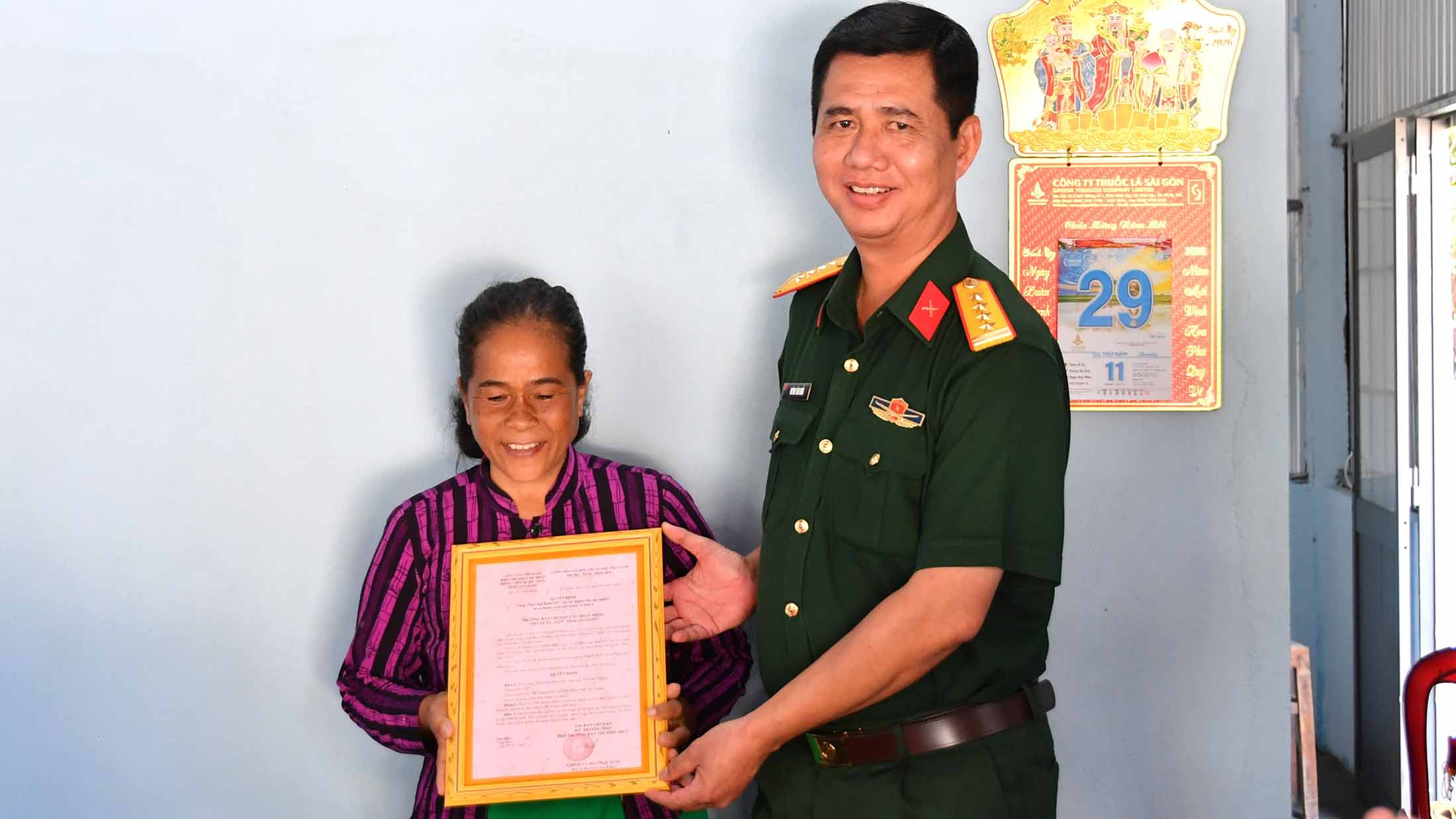 Phát biểu tại lễ bàn giao nhà, Thiếu tướng Nguyễn Văn Ngành, Ủy viên Ban Thường vụ Tỉnh ủy – Chỉ huy trưởng Bộ CHQS tỉnh đã gửi lời chúc mừng đến các gia đình được bàn giao nhà trong dịp tết cổ truyền năm nay và mong muốn các hộ gia đình đón một mùa xuân mới vui tươi, ấm áp hơn. Sau khi có căn nhà mới sẽ phát huy tinh thần vượt khó vươn lên, ra sức phát triển kinh tế gia đình ngày càng ổn định, chung tay cùng chính quyền xây dựng địa phương ngày càng giàu đẹp, giữ vững quốc phòng, an ninh.