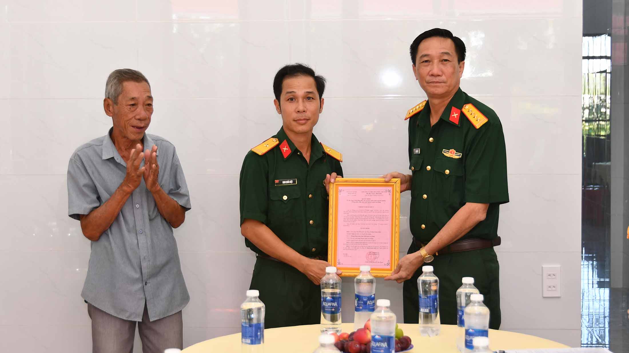 Đoàn đã đến bàn giao nhà cho đồng chí Thiếu tá Định Quốc Kiệt, trên địa bàn xã Long Thạnh là quân nhân đang công tác tại Bộ CHQS tỉnh An Giang hiện đang gặp khó khăn về nhà ở. Căn nhà bàn giao được xây dựng kiên cố trên phần đất của gia đình có diện tích trên 90m2, mái lợp tole, nền lót gạch bông, trị giá căn nhà gần 300 triệu đồng, trong đó quỹ xây dựng nhà đồng đội của Bộ Tư lệnh Quân khu hỗ trợ 60 triệu đồng, số tiền còn lại do gia đình tự đóng góp.