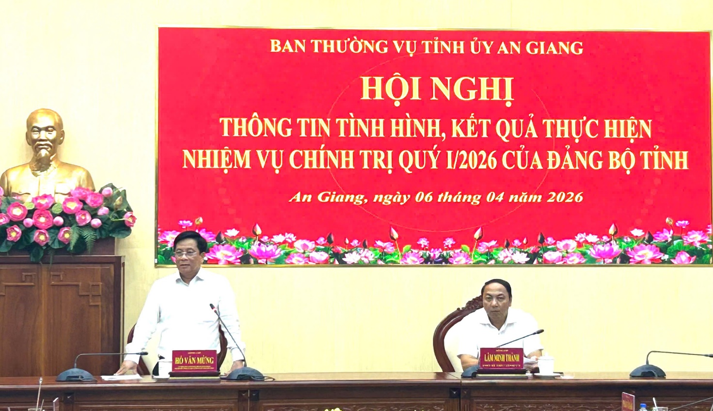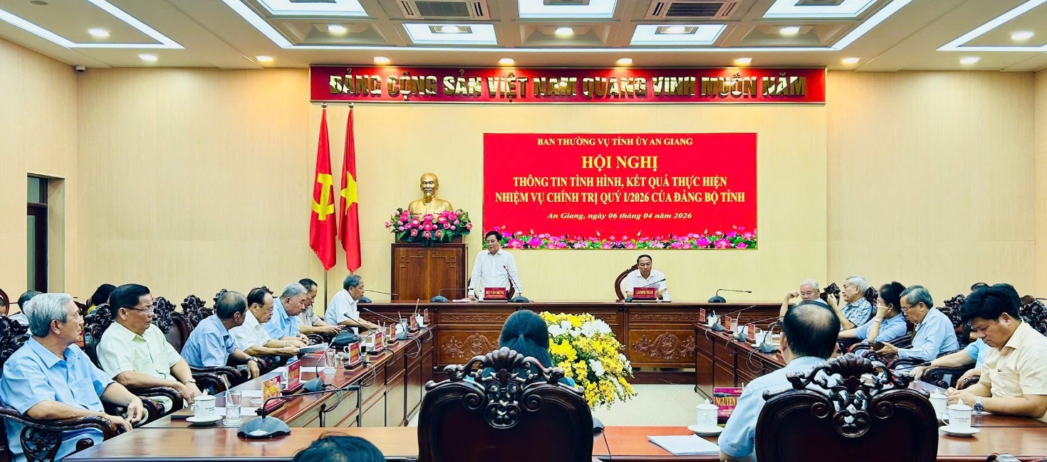 Quý I/2026, kinh tế của tỉnh An Giang tiếp tục duy trì mức tăng trưởng khá, đạt mức 7,8%, cao nhất vùng đồng bằng sông Cửu Long, xếp thứ 25/34 tỉnh thành trong cả nước. Sản lượng lúa ước đạt 4,3 triệu tấn, đạt 48,93% kế hoạch năm, tăng 0,2% so cùng kỳ. Nông nghiệp tiếp tục khẳng định vai trò trụ đỡ với sản lượng và chất lượng được nâng lên; thương mại – dịch vụ phục hồi tích cực; hoạt động xuất nhập khẩu, du lịch có nhiều khởi sắc. Công tác thu ngân sách đạt tiến độ đề ra, tạo nguồn lực cho đầu tư phát triển. Lĩnh vực văn hóa – xã hội được quan tâm đồng bộ, nhất là chăm lo đời sống nhân dân, các đối tượng chính sách, người có hoàn cảnh khó khăn. Công tác y tế, giáo dục tiếp tục được nâng chất. Đáng chú ý, công tác xây dựng Đảng và hệ thống chính trị tiếp tục được tăng cường. Việc triển khai các nghị quyết, chỉ thị được thực hiện nghiêm túc, gắn với đổi mới phương thức lãnh đạo, điều hành.
