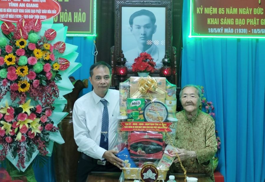 Ngày 18/6, Đoàn Công tác Ban Tôn giáo - Sở Nội vụ tỉnh An Giang do Trưởng ban Ban Tôn giáo tỉnh Lê Tùng Châu dẫn đầu đã đến thăm và tặng quà cho Ban Phụng tự Tổ đình Đức Huỳnh Giáo chủ Phật giáo Hòa Hảo (PGHH) và Ban Đại diện PGHH tỉnh, nhân kỷ niệm 85 năm Ngày Đức Huỳnh Giáo chủ khai sáng đạo PGHH (18/5 Kỷ Mão 1939 - 18/5 Giáp Thìn 2024).