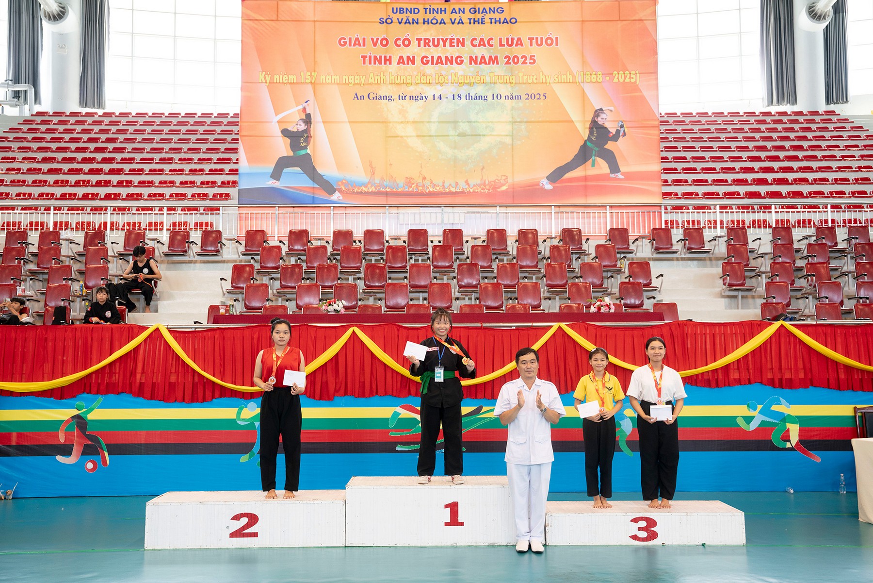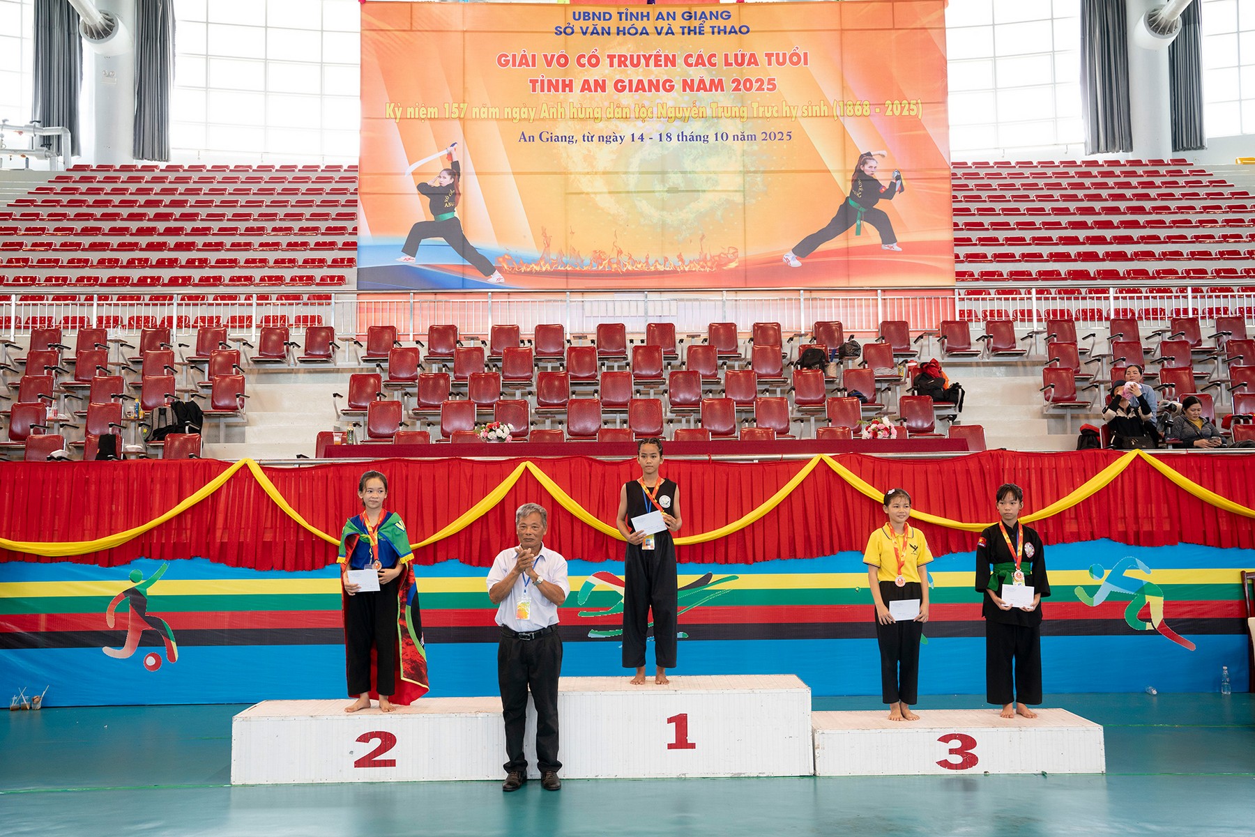 (Cổng TTĐT tỉnh AG)- Trưa 17/10, Giải Võ cổ truyền các lứa tuổi tỉnh An Giang năm 2025, do Sở Văn hóa và Thể thao tỉnh An Giang tổ chức đã kết thúc thành công tốt đẹp.