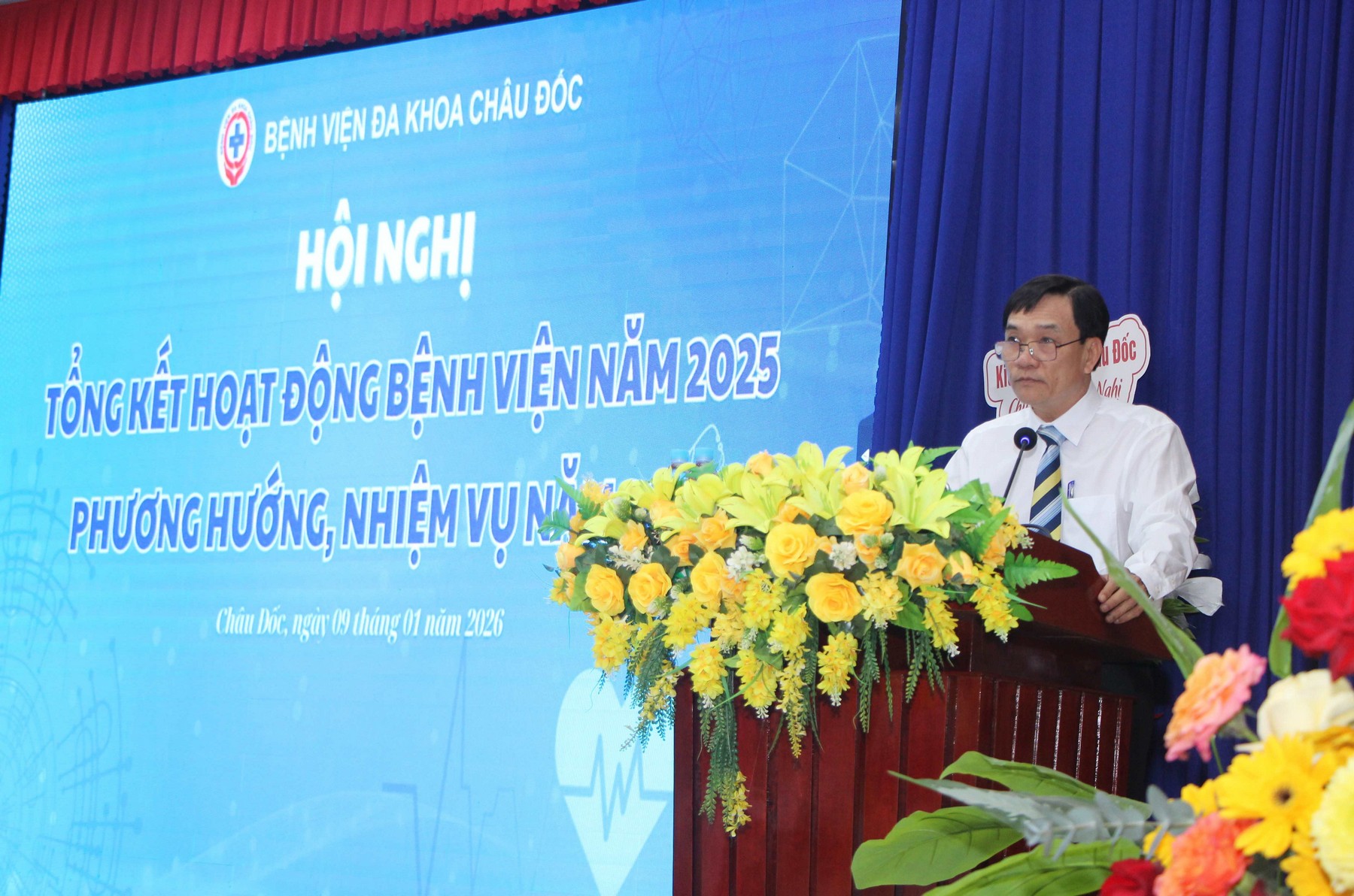 Năm 2026, Bệnh viện Đa khoa Châu Đốc tiếp tục nâng cao chất lượng khám chữa bệnh, lấy người bệnh làm trung tâm; phát triển kỹ thuật chuyên sâu, giảm chuyển tuyến; đầu tư trang thiết bị hiện đại, từng bước hoàn thiện chuyển đổi số y tế; xây dựng đội ngũ nhân lực chất lượng cao, đáp ứng yêu cầu bệnh viện tuyến cuối khu vực.