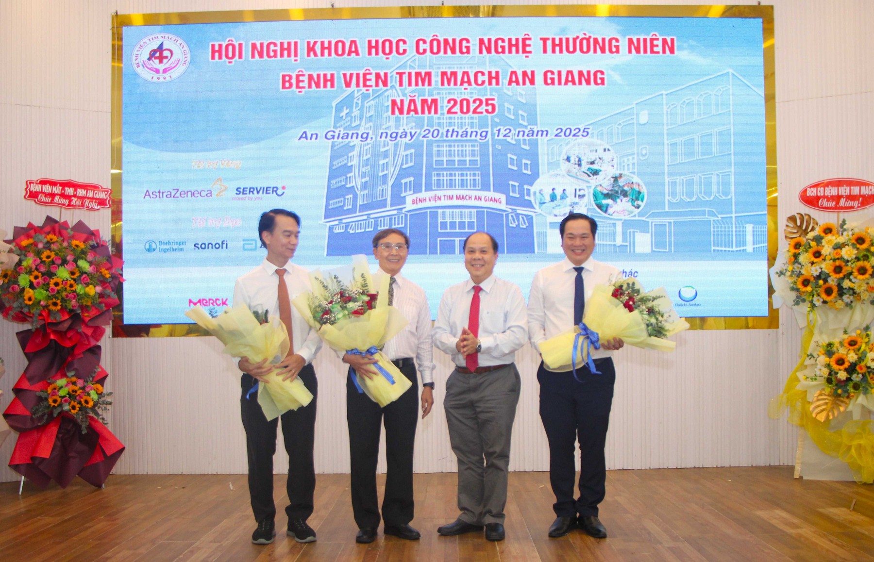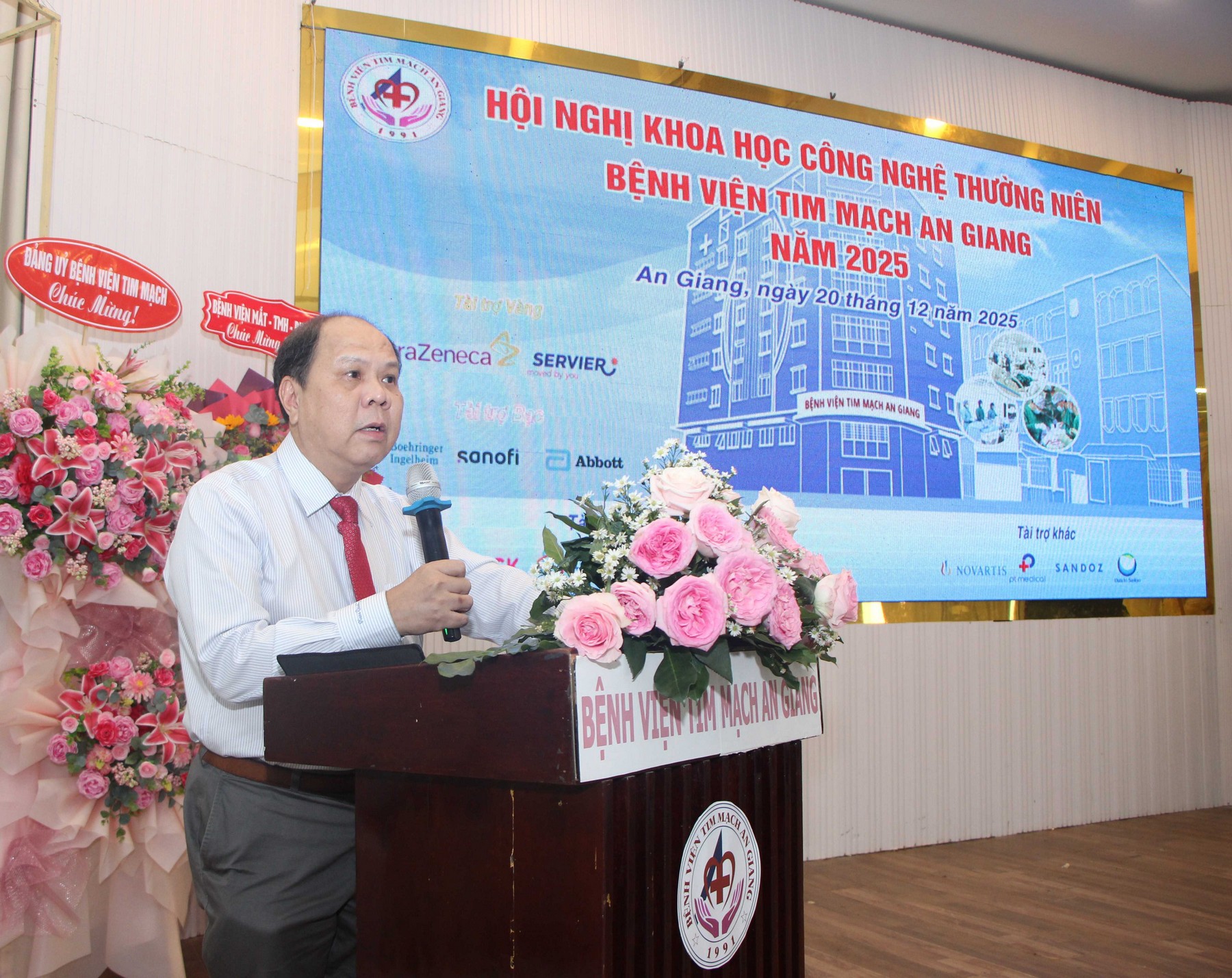 (Cổng TTĐT tỉnh AG)- Chiều 20/12, Bệnh viện Tim mạch An Giang (phường Long Xuyên, tỉnh An Giang) tổ chức Hội nghị khoa học công nghệ năm 2025. PGS.TS.BS Nguyễn Văn Trí, Chủ tịch Hội Lão khoa TP. Hồ Chí Minh; TS.BS Bùi Thế Dũng, Trưởng khoa Nội Tim mạch Bệnh viện Đại học Y dược TP. Hồ Chí Minh; Ths. Bs Bùi Hữu Minh Trí, Giám đốc Bệnh viện Tim mạch An Giang; cùng trên 250 đại biểu tham dự.
