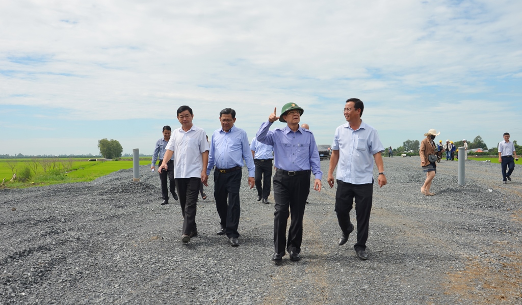 (Cổng TTĐT tỉnh AG)- Ngày 26/5, Ủy viên Ban Chấp hành Trung ương Đảng, Bí thư Tỉnh ủy An Giang Lê Hồng Quang, Trưởng ban Chỉ đạo triển khai thực hiện dự án tuyến đường bộ cao tốc Châu Đốc - Cần Thơ - Sóc Trăng đoạn đi qua địa phận tỉnh An Giang dẫn đầu đoàn công tác của tỉnh kiểm tra tiến độ thi công và thăm, động viên công nhân thi công dự án trên địa bàn tỉnh. Cùng đi có Phó Chủ tịch UBND tỉnh An Giang Ngô Công Thức, lãnh đạo các sở ngành và địa phương liên quan.