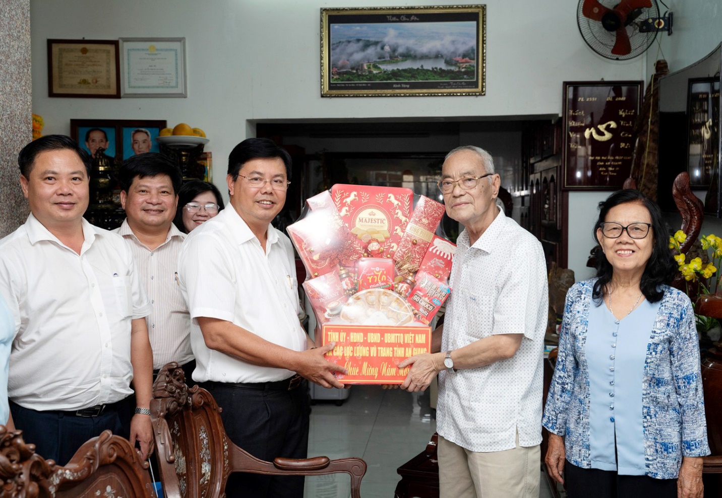 Đoàn công tác đến thăm, chúc Tết các đồng chí: Lê Phú Hội, nguyên Bí thư Tỉnh ủy An Giang; Võ Thanh Khiết, nguyên Bí thư Tỉnh ủy An Giang; Thượng tướng Bùi Văn Huấn, nguyên Ủy viên Ban Chấp hành Trung ương Đảng, nguyên Phó Chủ nhiệm Tổng cục Chính trị Quân đội nhân dân Việt Nam.