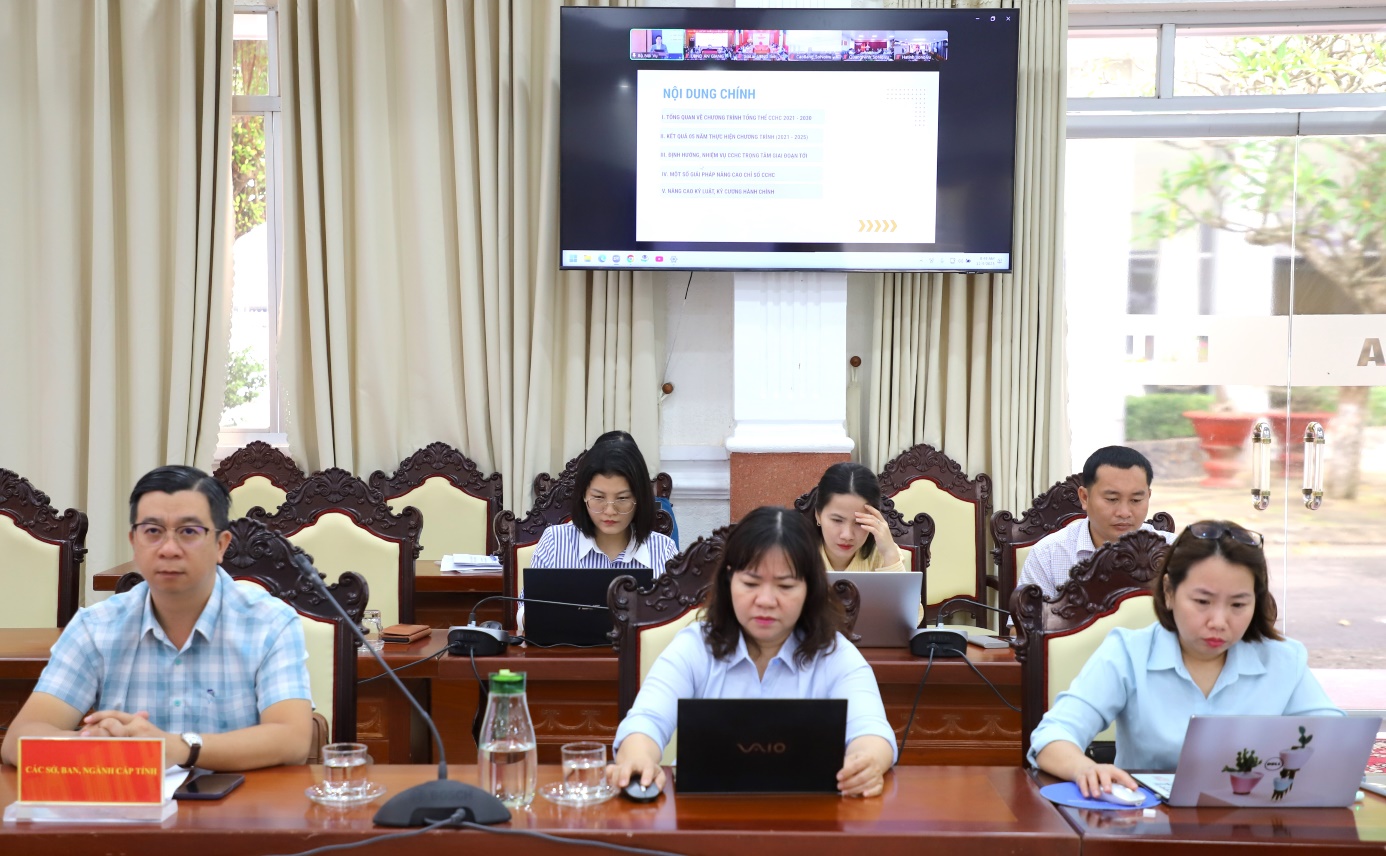 Tại điểm cầu tỉnh An Giang, Phó Giám đốc Sở Nội vụ Trương Long Hồ chủ trì; Lãnh đạo các sở, ban, ngành và công chức thực hiện công tác cải cách hành chính tham dự.