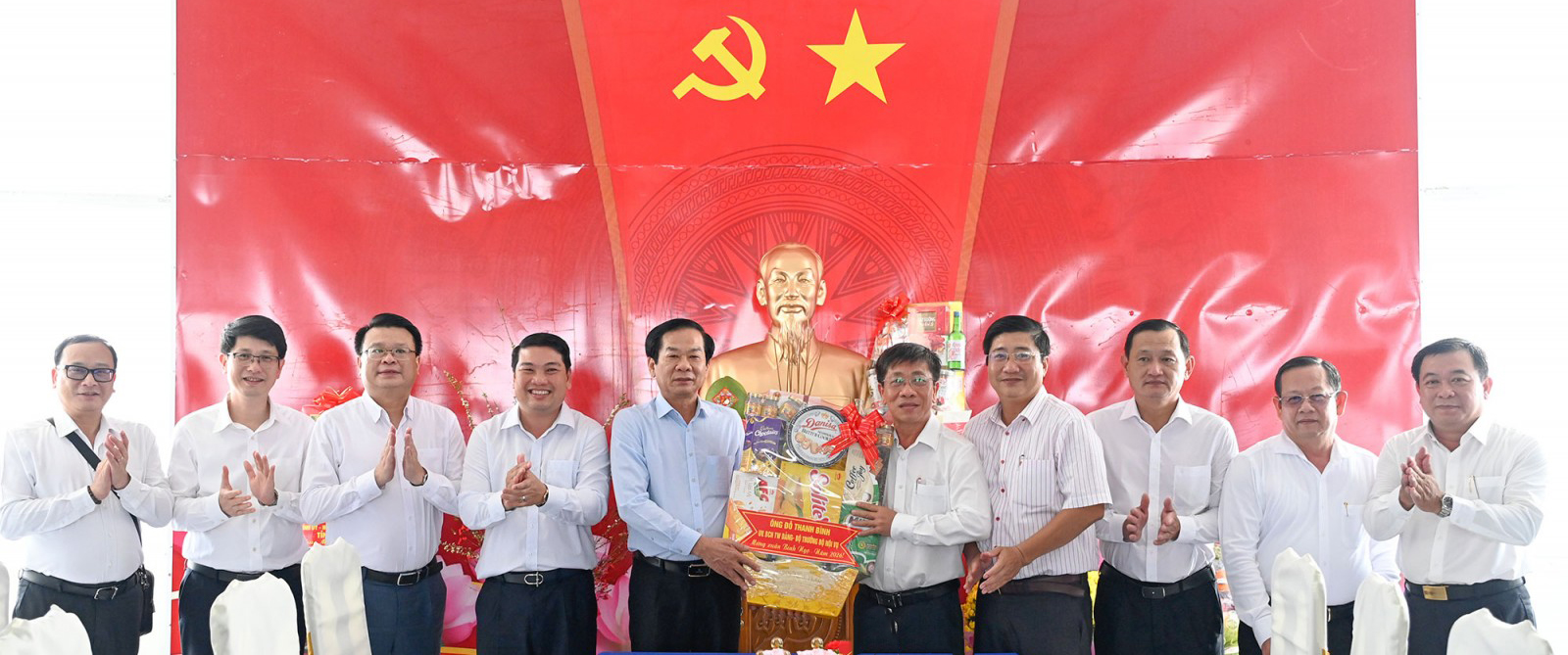(Cổng TTĐT tỉnh AG)-Chiều 06/02, Ủy viên Ban Chấp hành Trung ương Đảng, Bộ trưởng Bộ Nội vụ, Phó Trưởng Ban Tổ chức Trung ương Đỗ Thanh Bình cùng đoàn công tác đến thăm, chúc Tết Đảng bộ, chính quyền và gia đình có hoàn cảnh khó khăn trên địa bàn xã Vĩnh Bình (tỉnh An Giang).