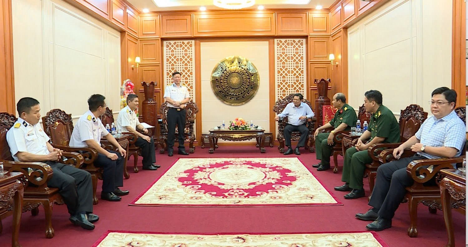 (Cổng TTĐT tỉnh AG)- Chiều 26/01, Bộ Tư lệnh Vùng 5 Hải quân do Đại tá Hoàng Quốc Hoàn, Phó Chính ủy Vùng làm trưởng đoàn đã đến chúc Tết UBND tỉnh An Giang. Phó Chủ tịch UBND tỉnh Ngô Công Thức tiếp và làm việc với đoàn.