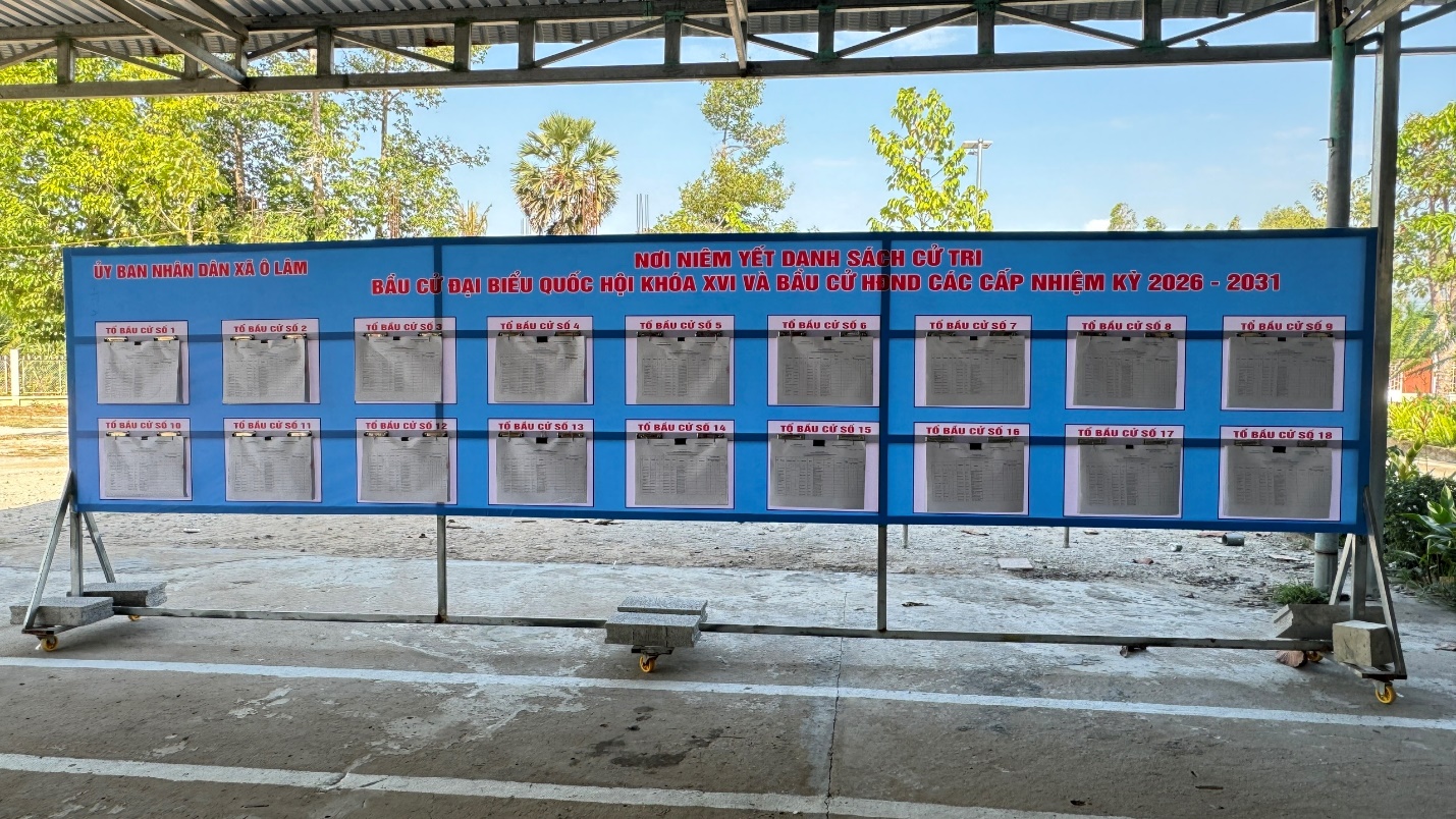 (Cổng TTĐT tỉnh AG)- Thực hiện kế hoạch tổ chức cuộc bầu cử đại biểu Quốc hội khóa XVI và đại biểu Hội đồng nhân dân các cấp nhiệm kỳ 2026 – 2031, từ ngày 01 đến 03/02/2026, 18 tổ bầu cử trên địa bàn xã Ô Lâm tổ chức niêm yết danh sách cử tri theo đúng quy định.